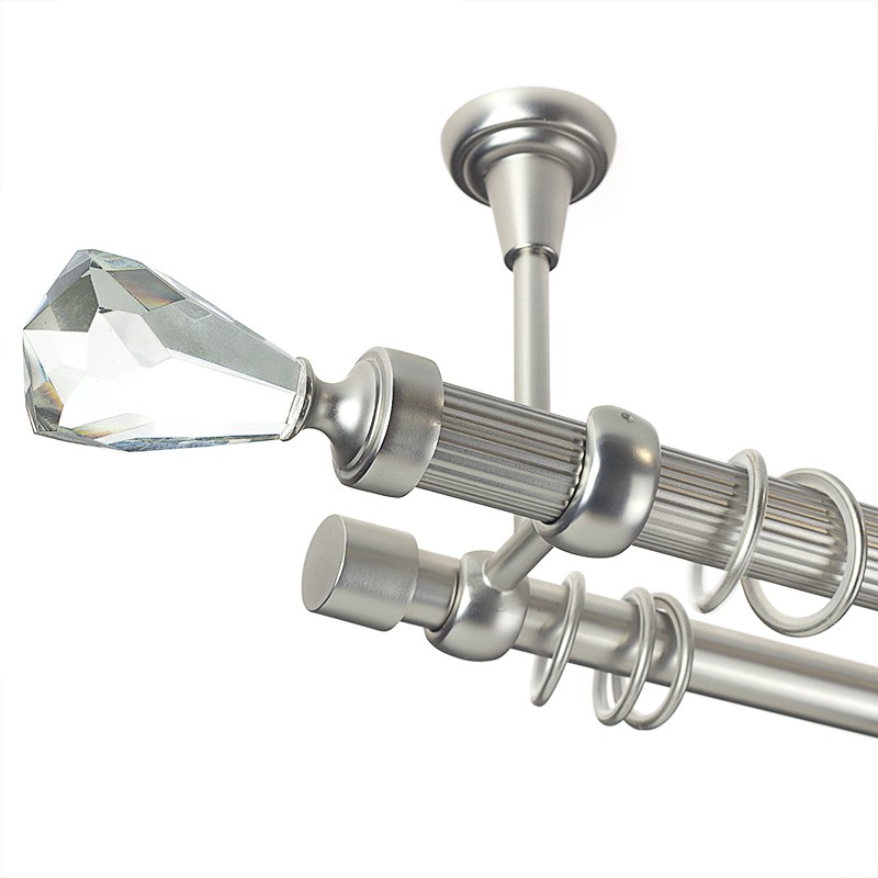 Crystal Cone – set galerie metalica dubla,prindere tavan, teava striata, Crom Mat 25/19 mm