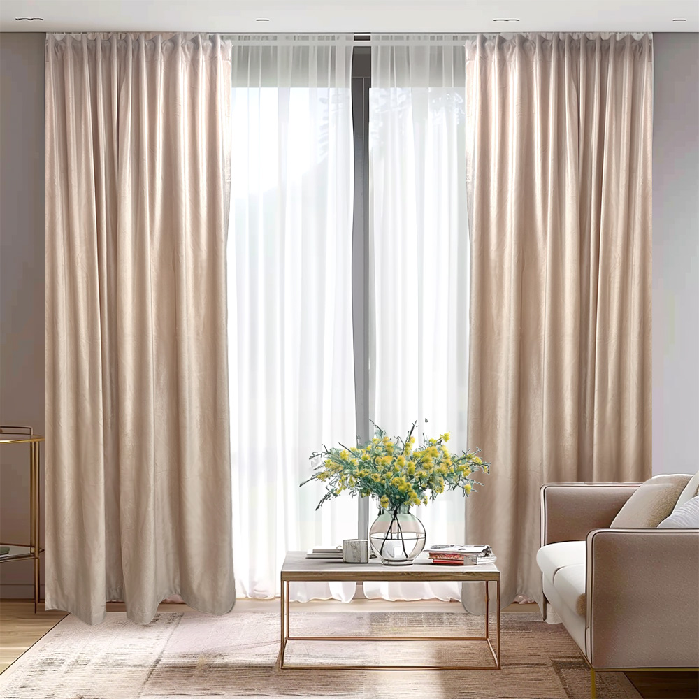 Draperie de Catifea Blackout 90% Crem L2m/H2.58m cu Capse Argintii