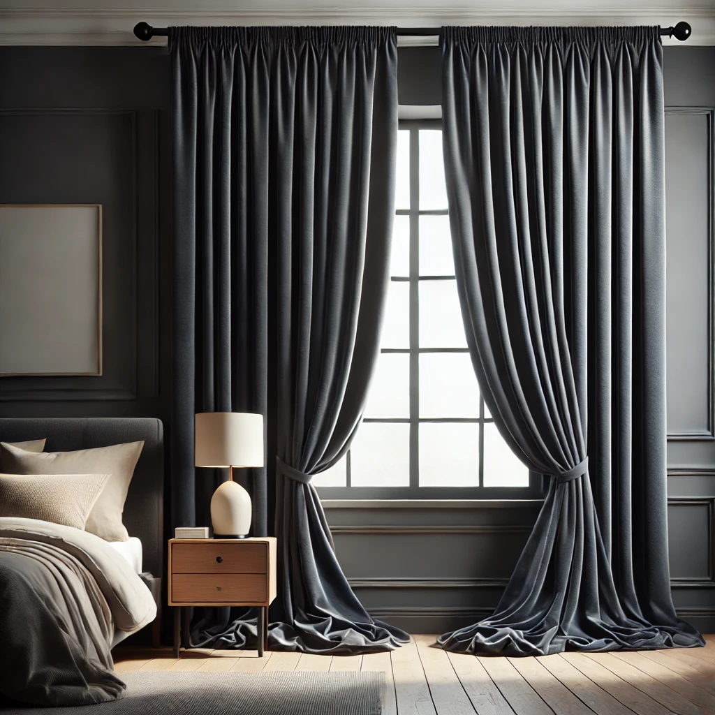 Draperie de Catifea Elite Blackout 100% Gri Antracit L1.50m/H1.50 cu Capse Argintii