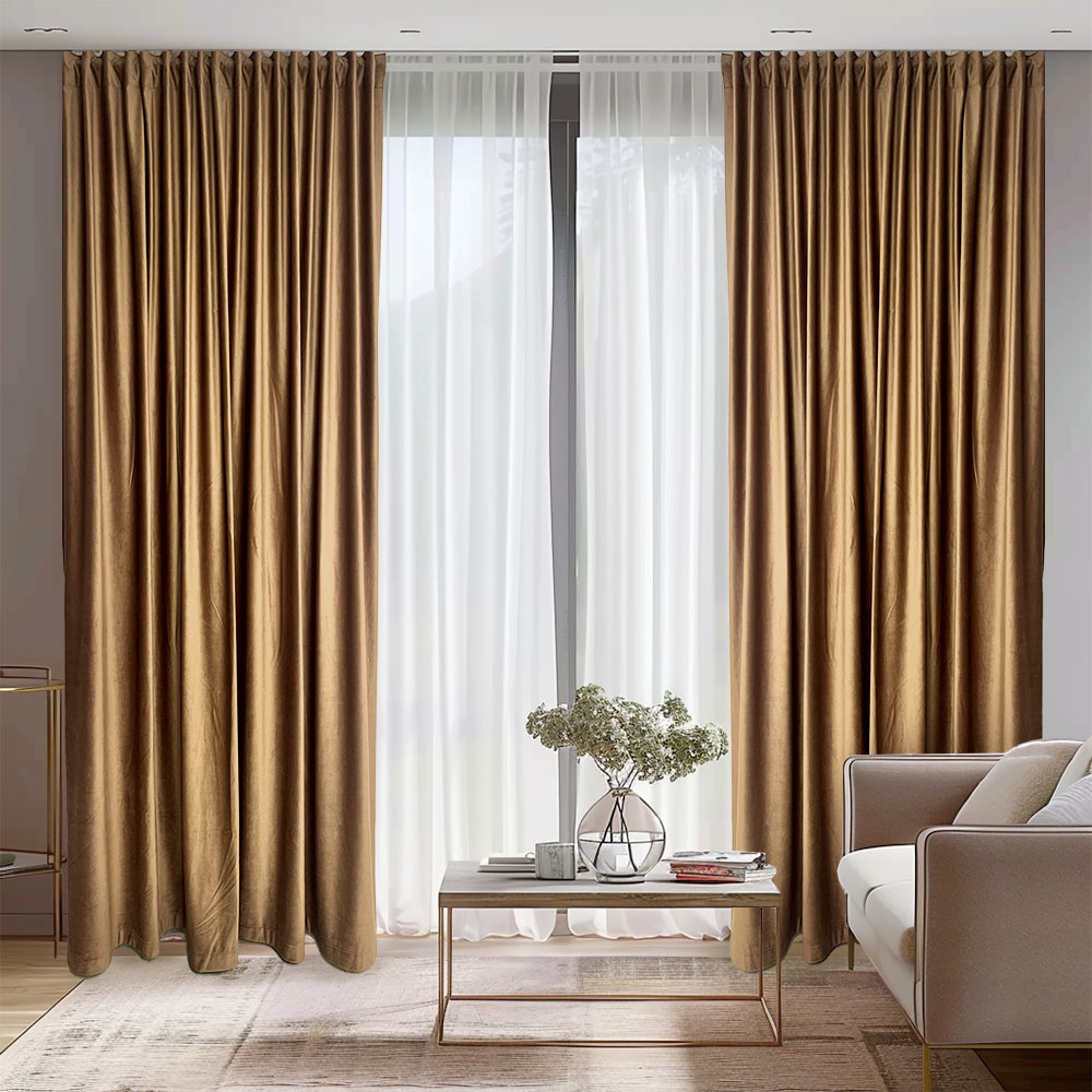 Draperie de Catifea Semi-Opaca 70% Auriu L3.50m/H2.35m cu Rejansa de 6 cm
