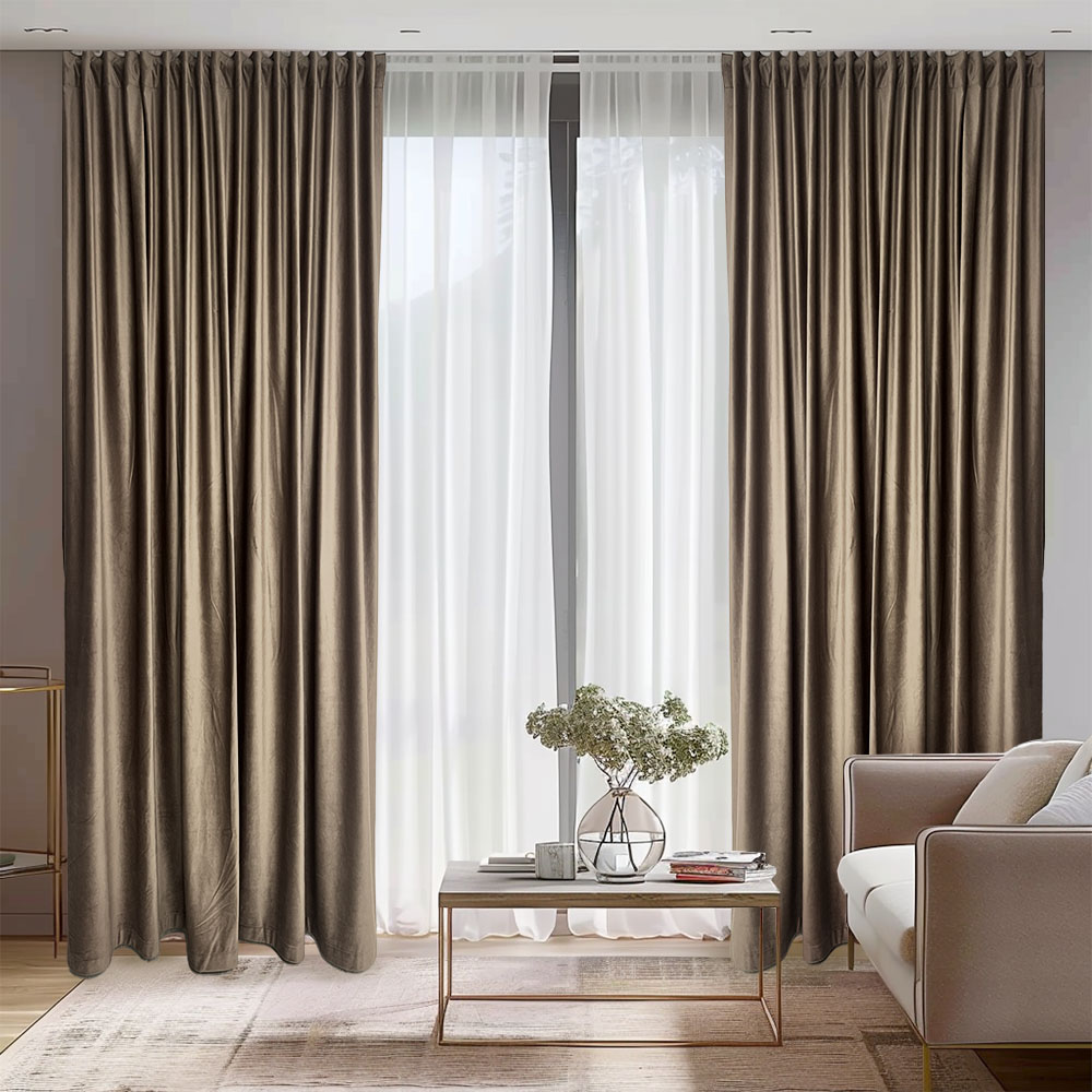 Draperie de Catifea Semi-Opaca 70% Bej L5.5m/H2.50m cu Rejansa cu 6cm