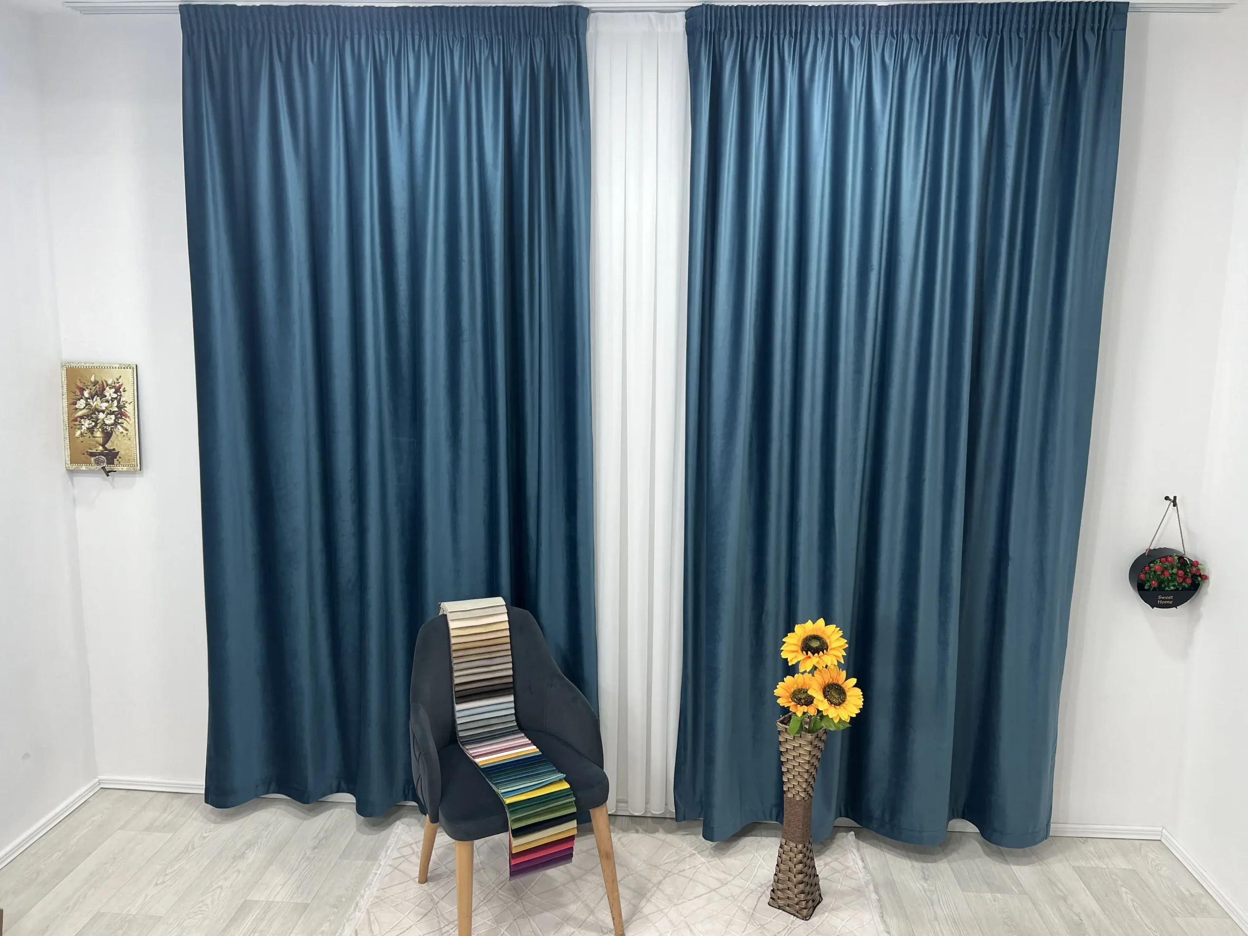 Draperie de Catifea Semi-Opaca 70% Turcuaz L1.80m/H2.75 m cu Rejansa de Bara