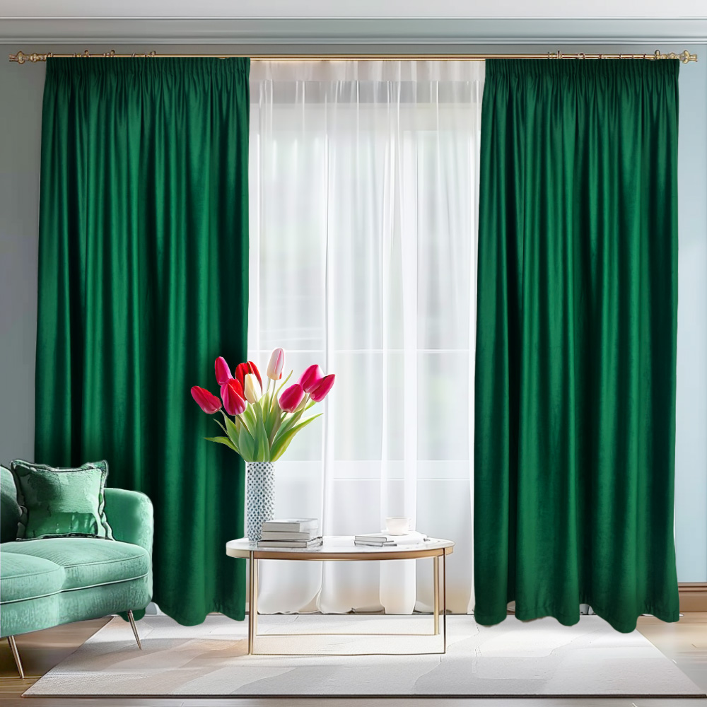 Draperie de Catifea Semi-opaca 70% Verde L4.50m/H2.40m cu Rejansa de 10 cm