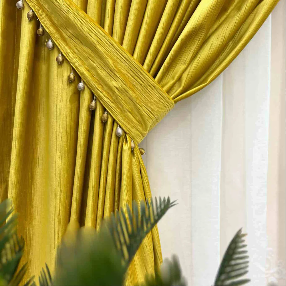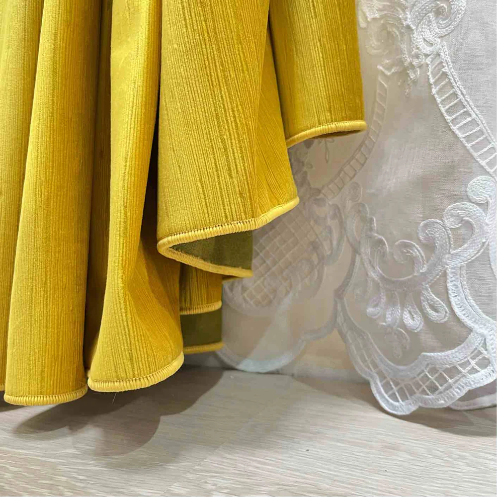 Draperie de Catifea Texturata Lux Blackout 80% Mustar L2.25m/H2.65m cu Pliuri (sina 0.80mt)