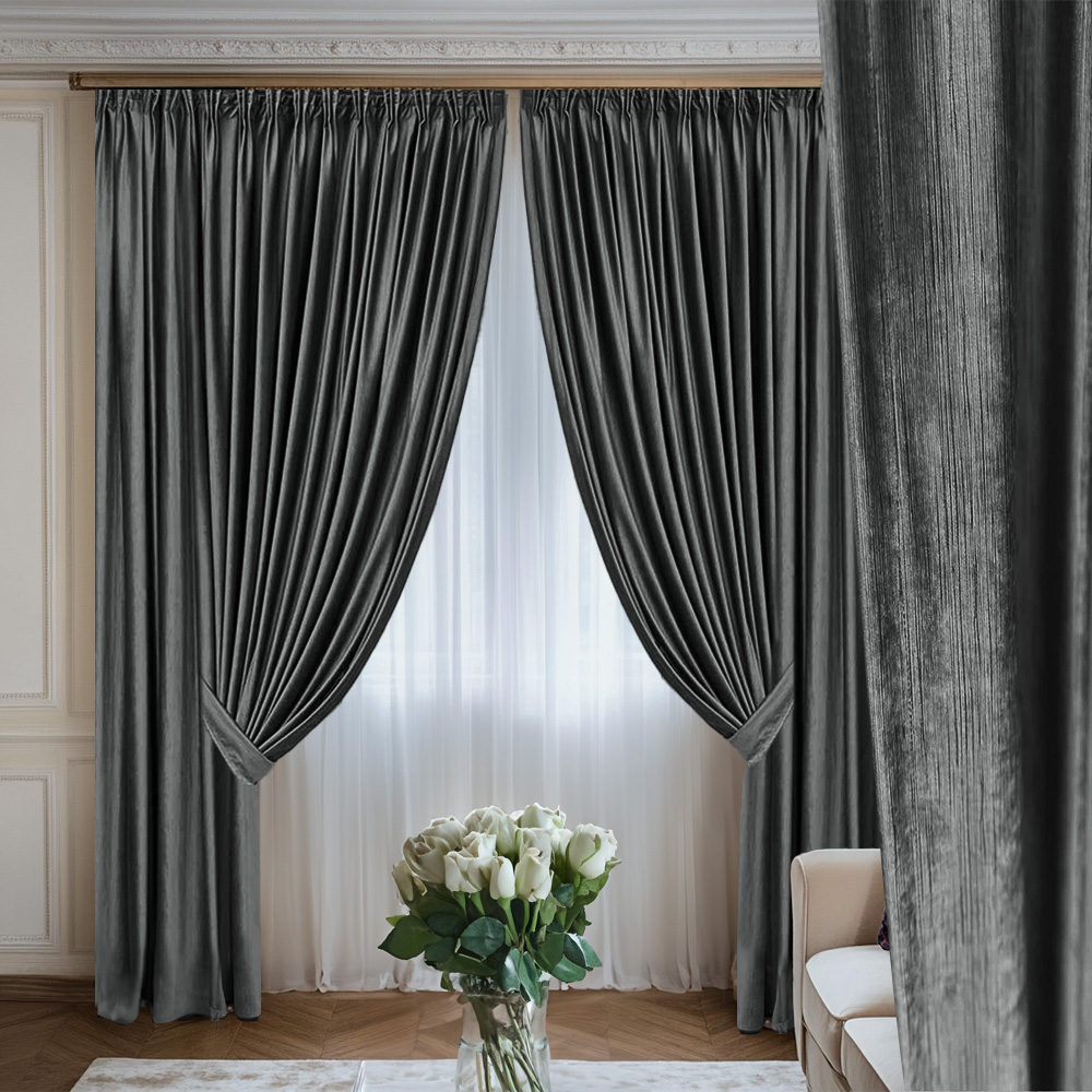 Draperie de Catifea Texturata Tokyo Blackout 80% Gri Petrol