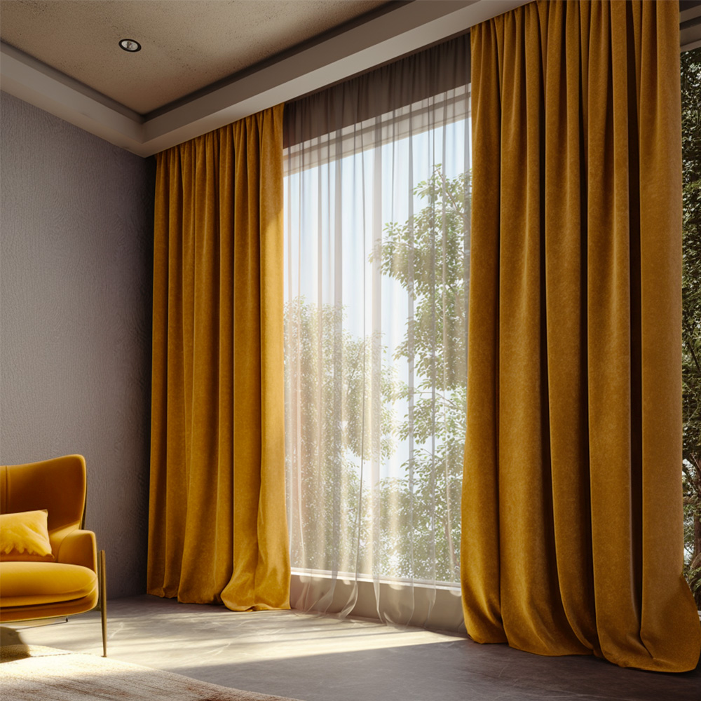 Draperie din Velur Raiat Sonil Blackout 85% Galben Mustar