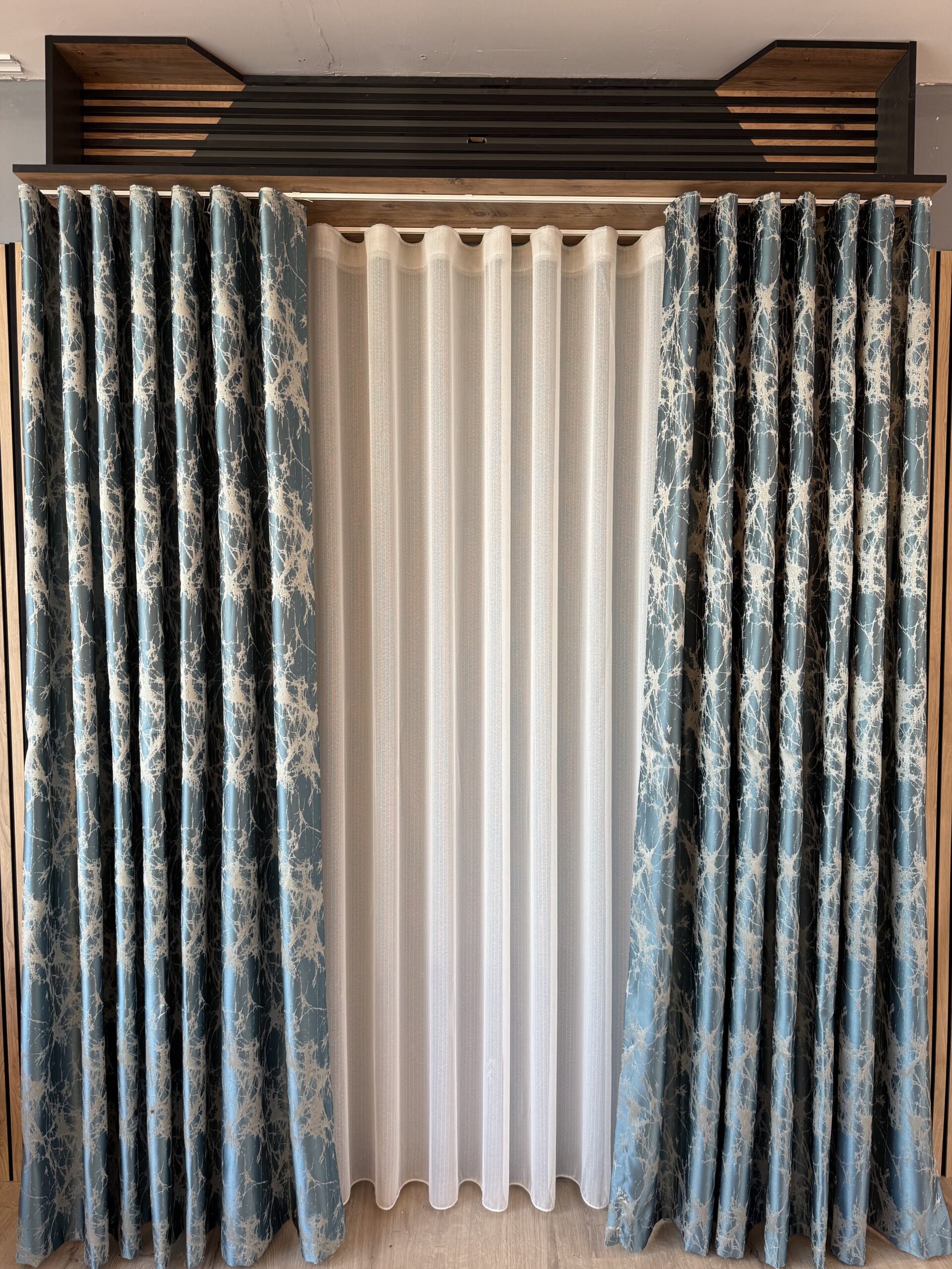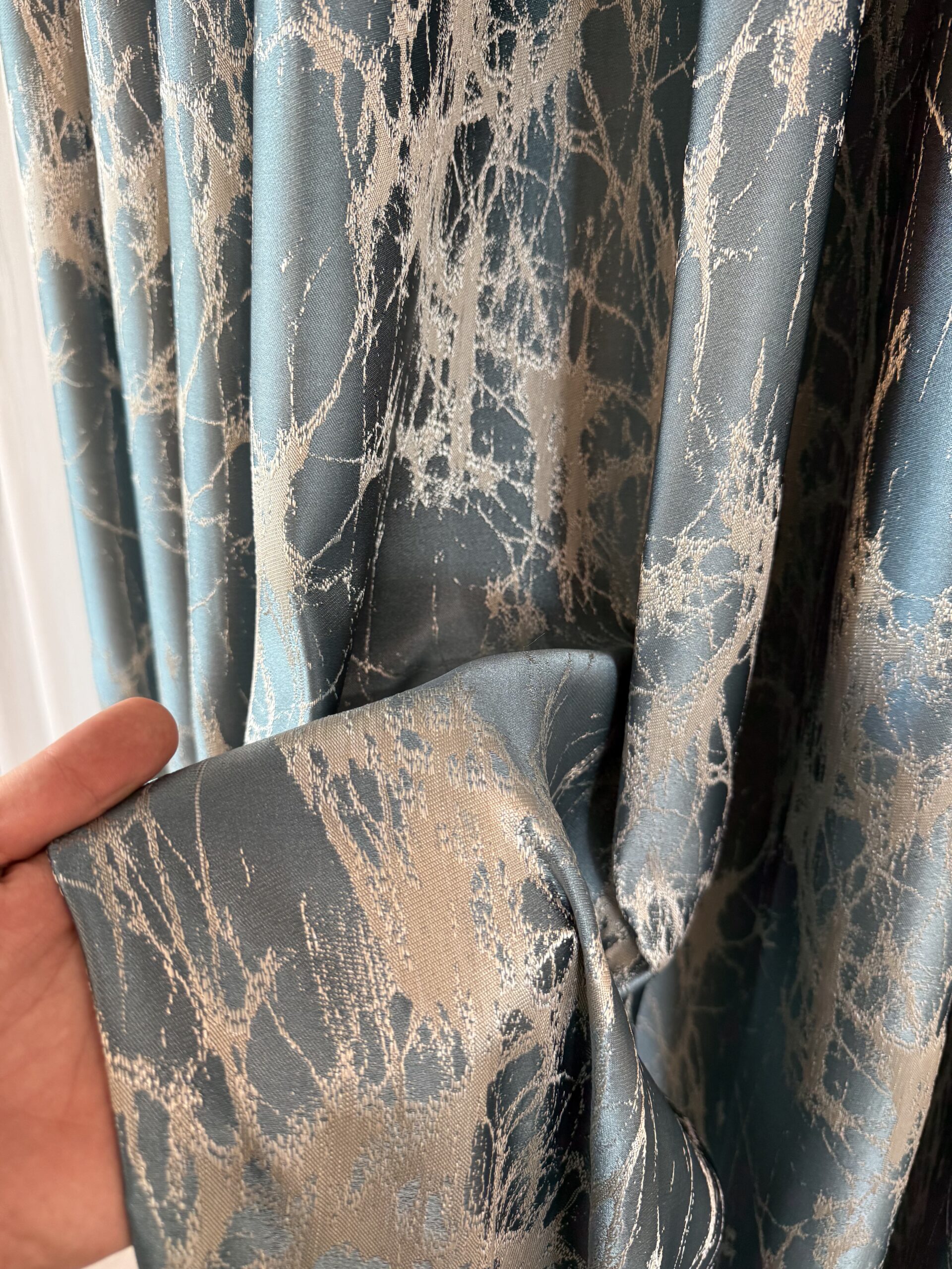 Draperie Elegantă Turcoaz cu Imprimeu Oglindă Spartă L5m/H2.60m cu Rejansa Wave