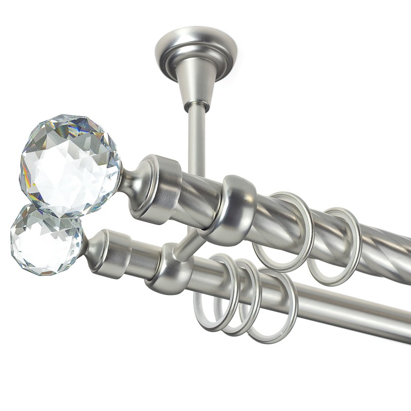 Kula Crystal Double- set galerie metalica dubla, teava Twister,prindere tavan, Crom Mat 25/19 mm
