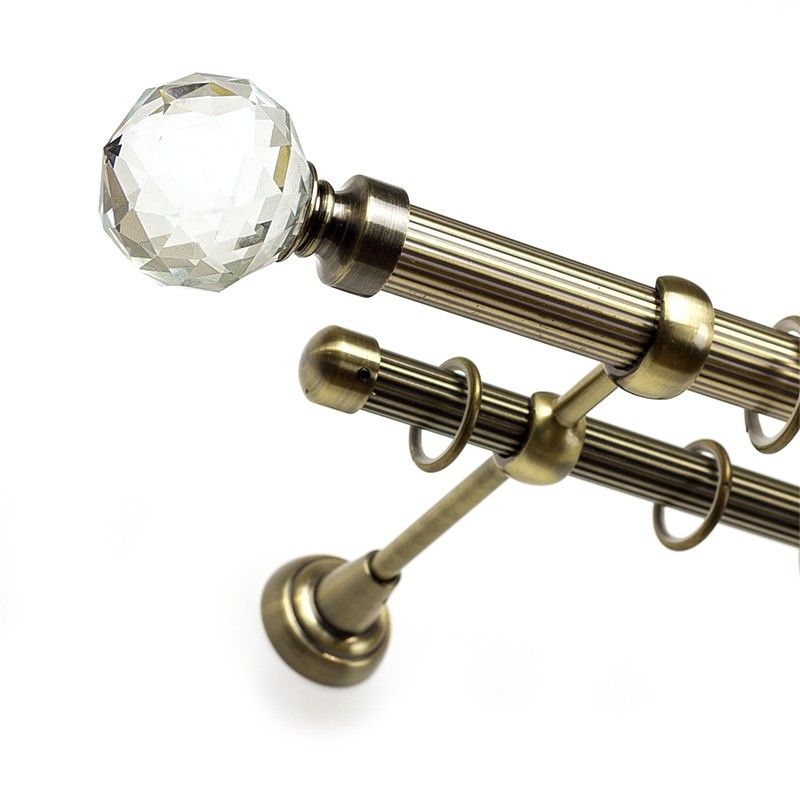 Kula Crystal- set galerie metalica dubla, teava striata Aur Antic 25/19 mm
