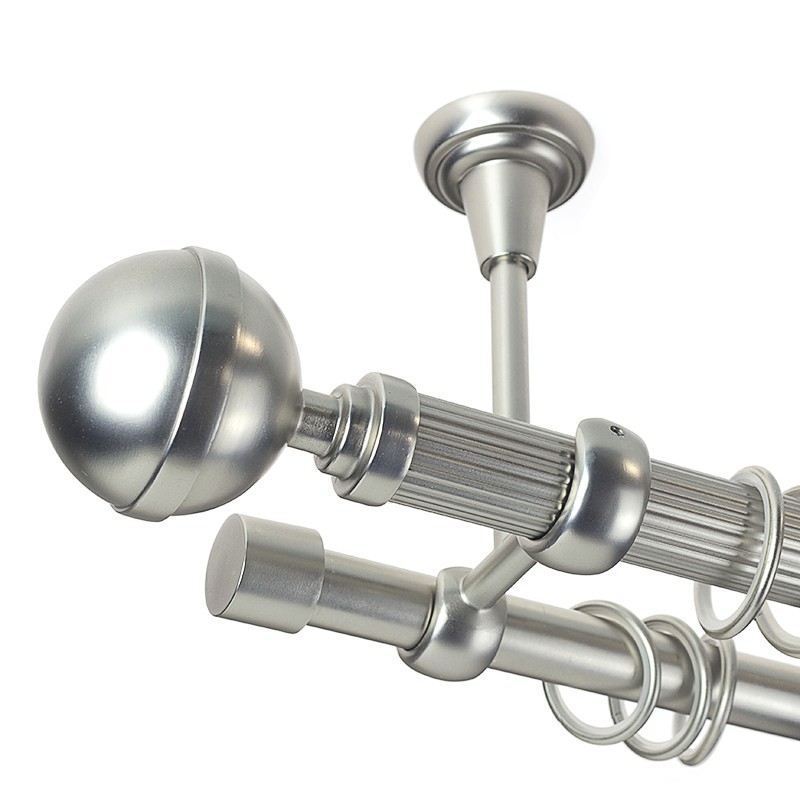 Kula Lux – set galerie metalica dubla,prindere tavan, teava Striata, Crom Mat 25/19 mm