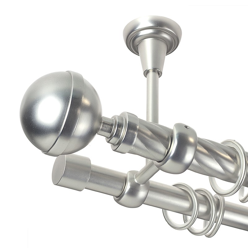 Kula Lux – set galerie metalica dubla,prindere tavan, teava Twister, Crom Mat 25/19 mm