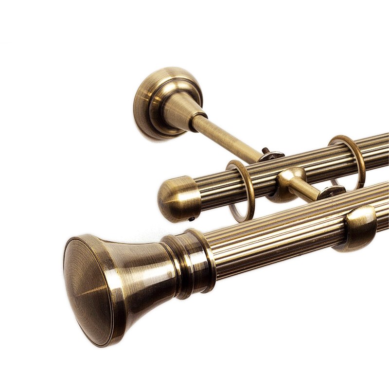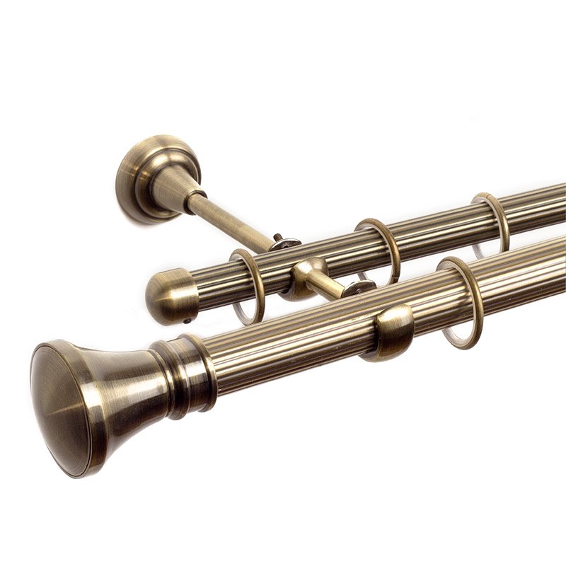Luxor – set galerie metalica dubla , teava striata Aur Antic 25/19 mm