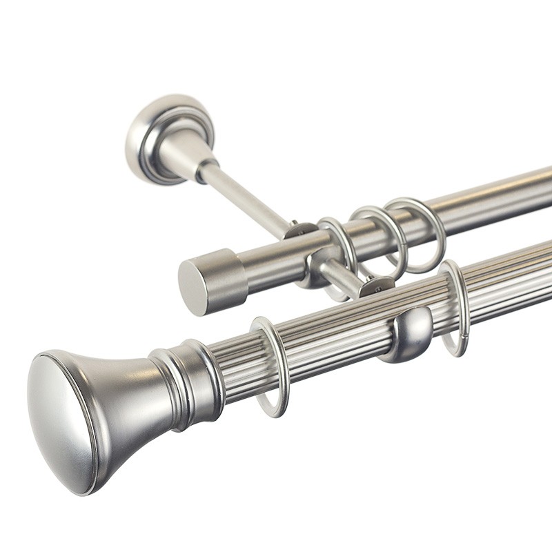 Luxor – set galerie metalica dubla, teava striata, Crom Mat 25/19 mm
