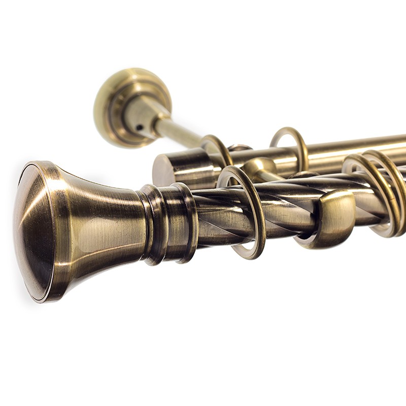 Luxor – set galerie metalica dubla , teava Twister, Aur Antic 25/19 mm