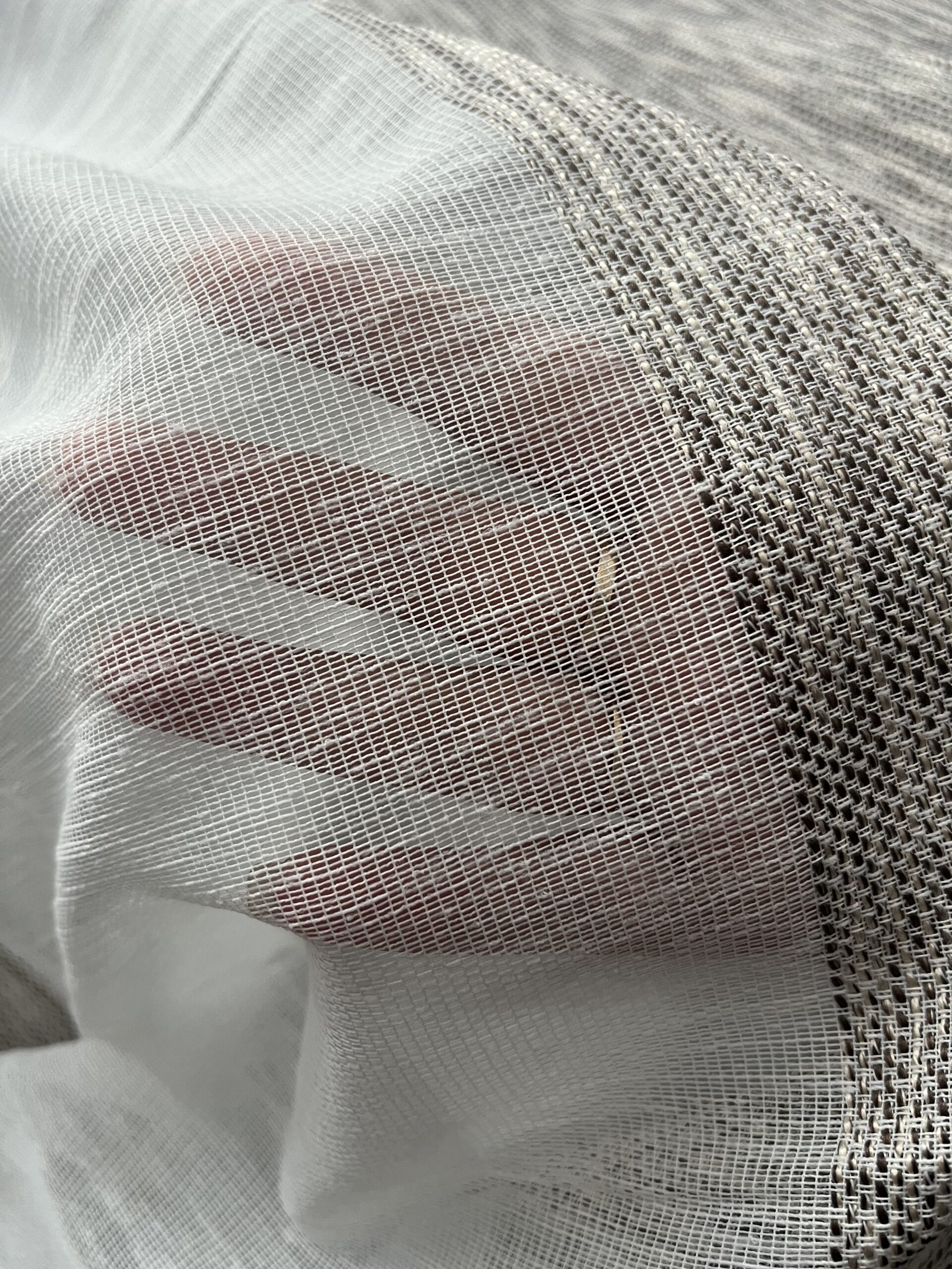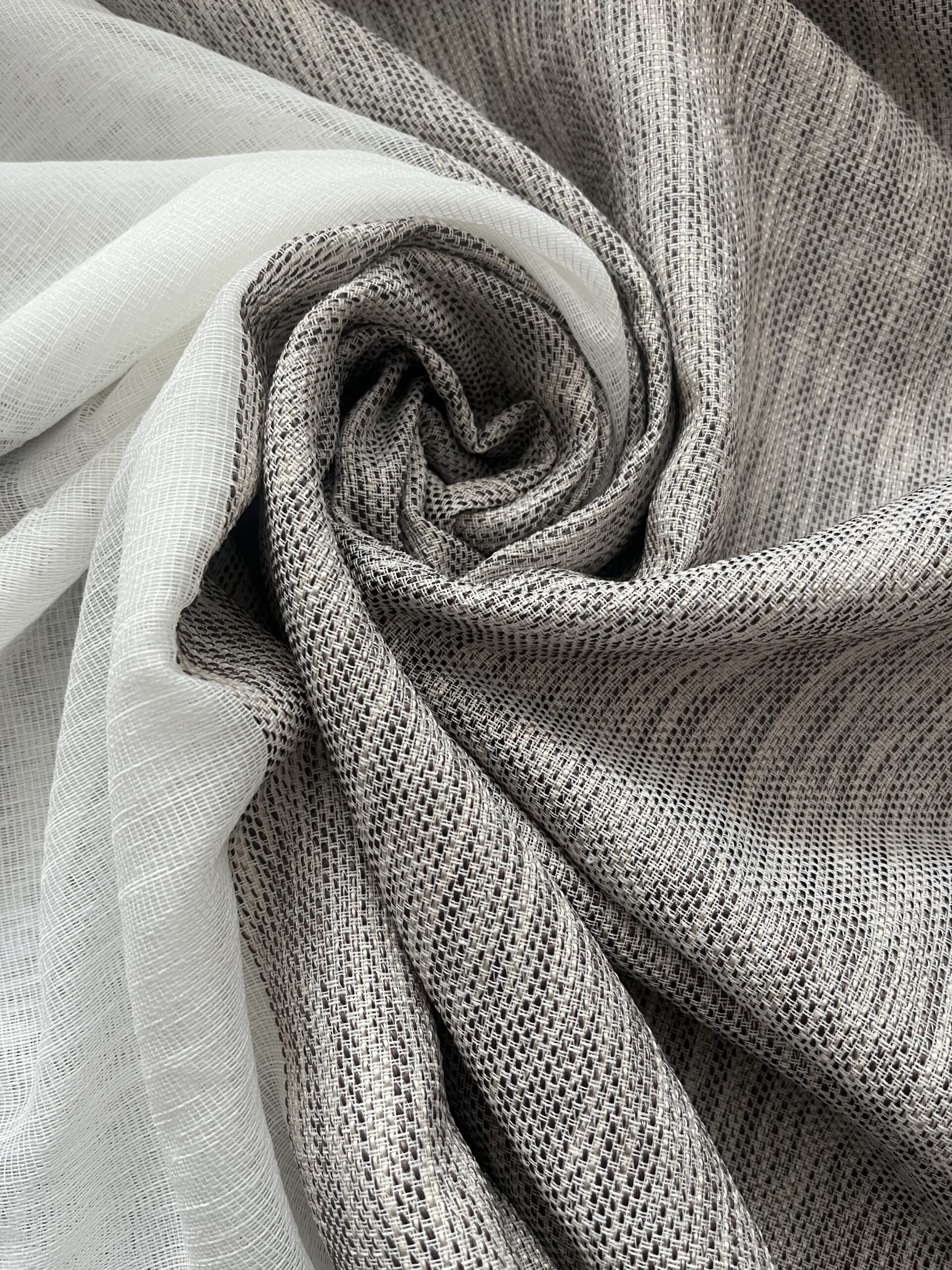 Material de Perdea Alb cu Textura Groasa cu Bordura Maro