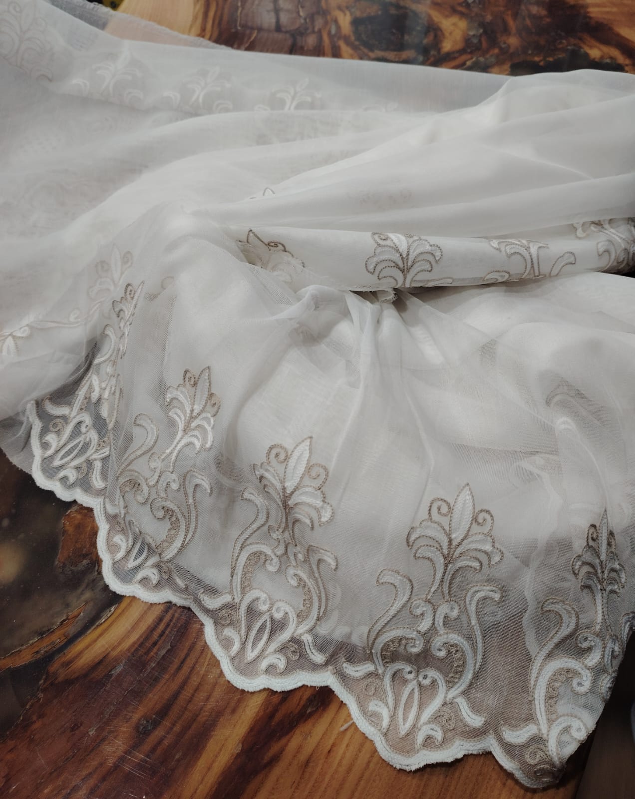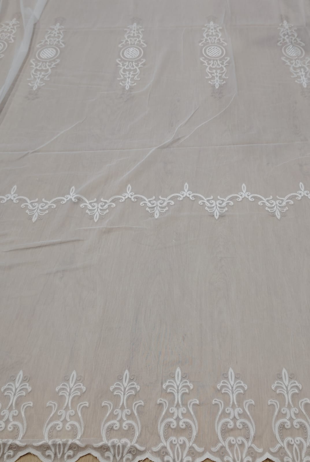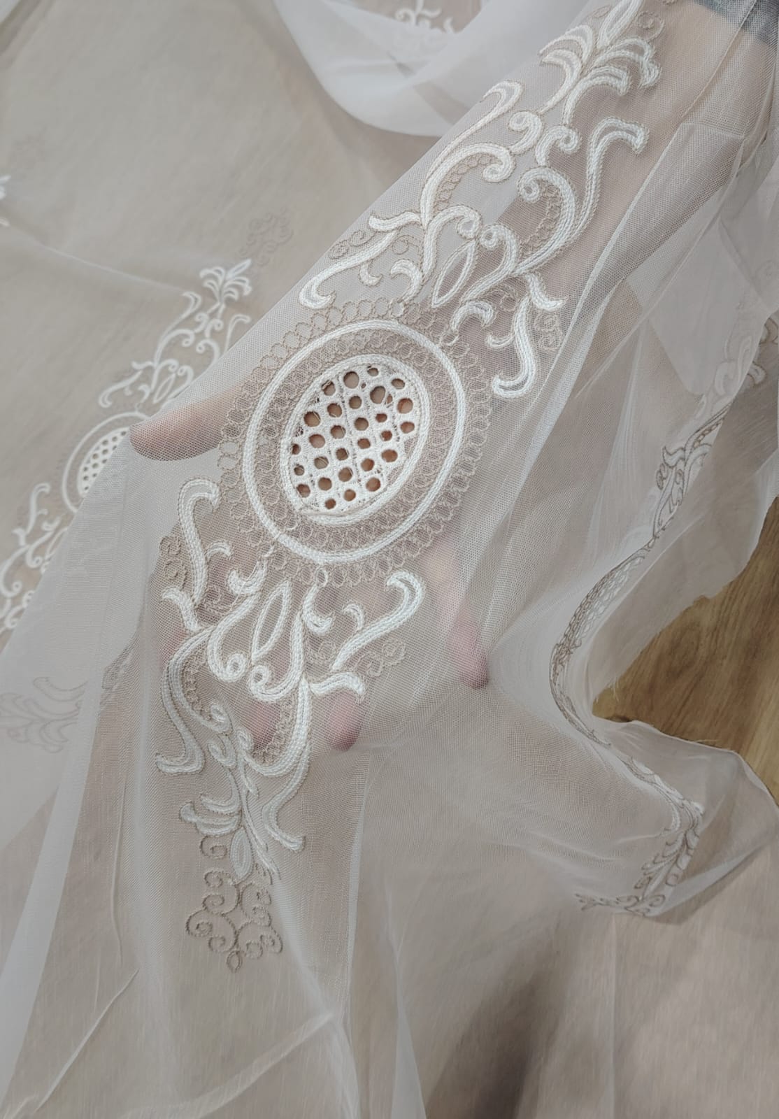 Material de Perdea Brodata Tul Alb /Bej