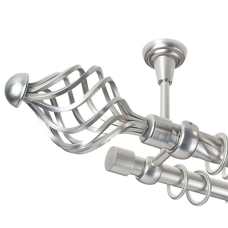 Navona – set galerie metalica dubla, prindere tavan, teava Twister, Crom Mat, 25/19 mm