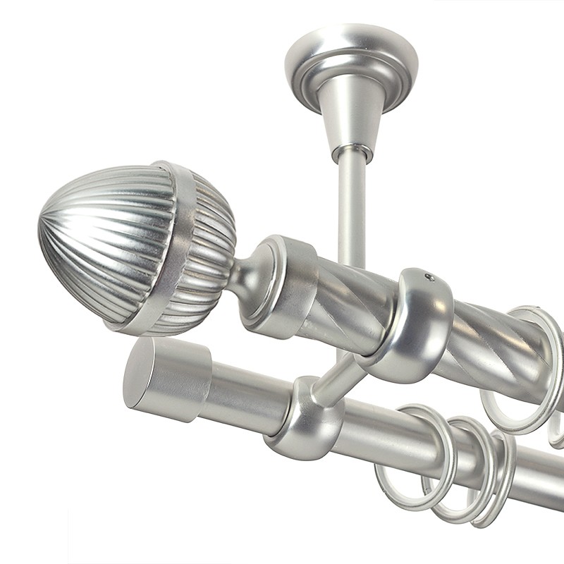 Odeon – set galerie metalica dubla, prindere tavan, teava Twister, Crom Mat, 25/19 mm
