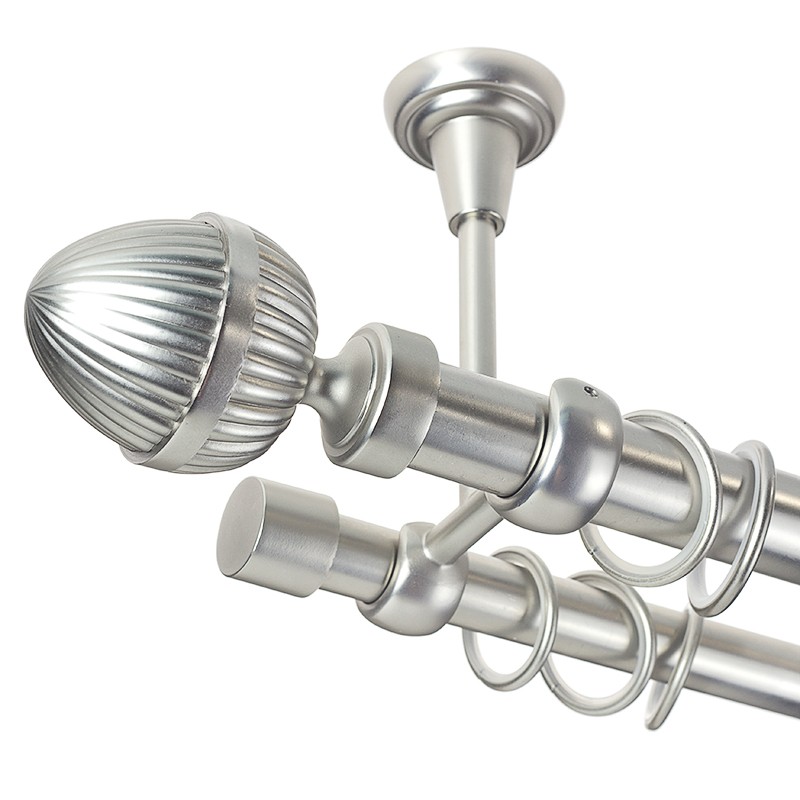 Palacio – set galerie metalica dubla,prindere tavan, teava striata, Crom Mat 25/19 mm