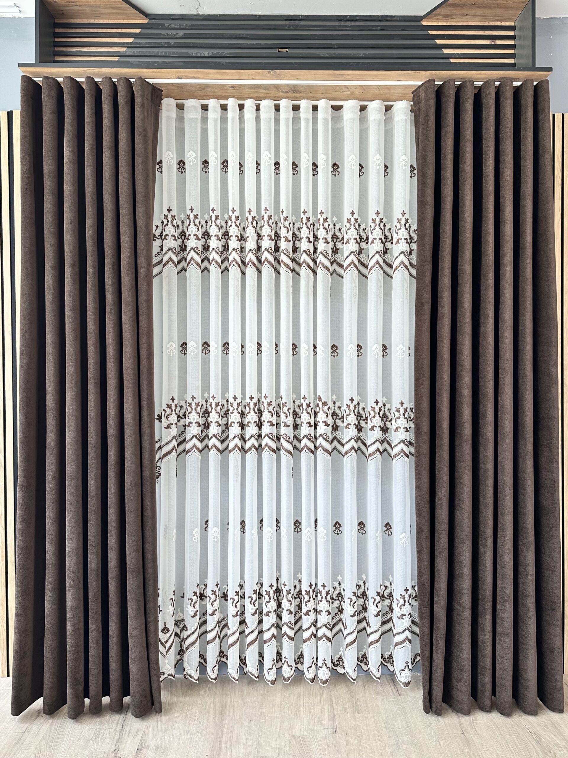 Perdea Anna cu Broderie Clasica Crem /Maro 24314