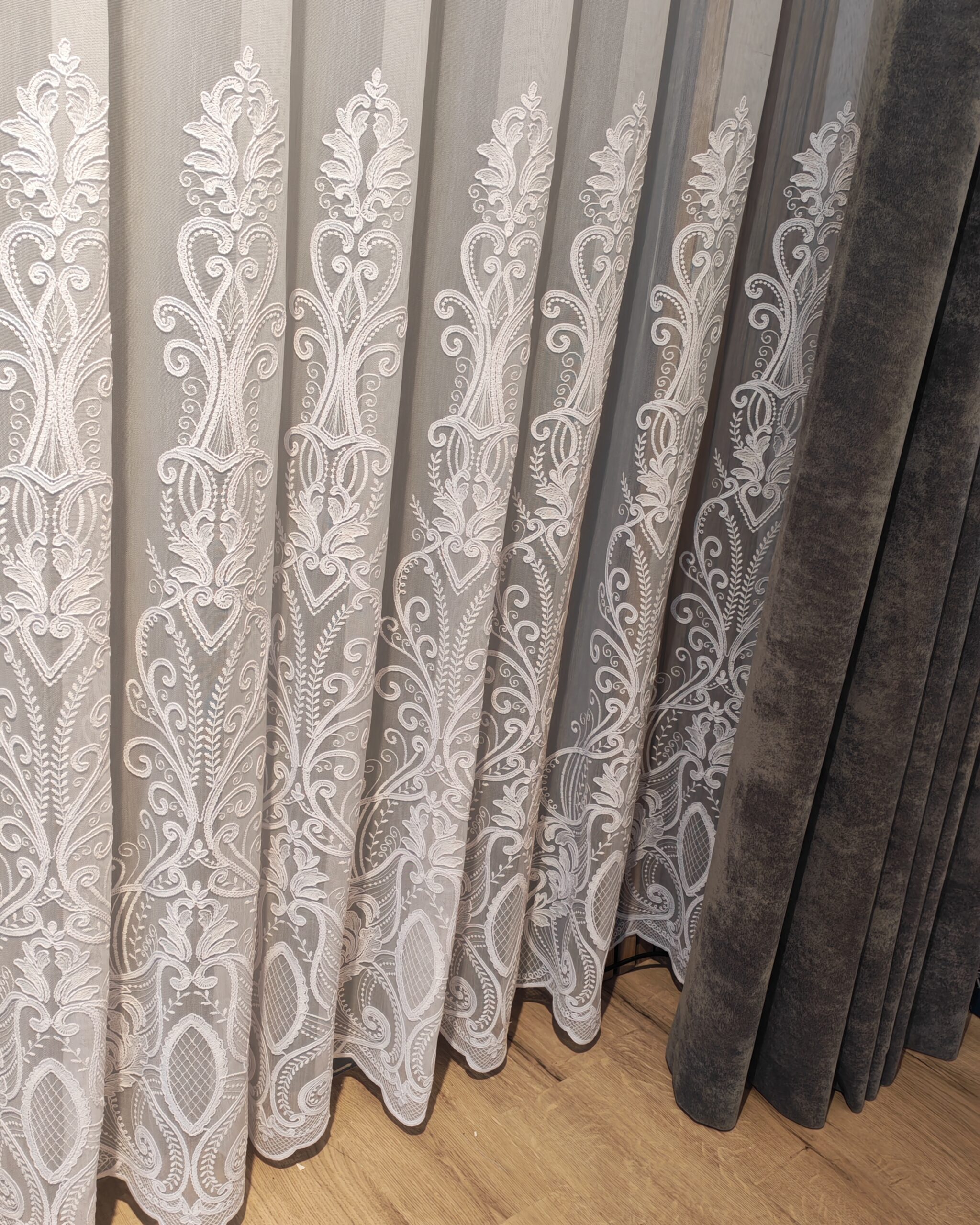 Perdea Aura din Bambus cu Broderie Albă 48109 L4.10m/H2.55m cu Rejansa Wave