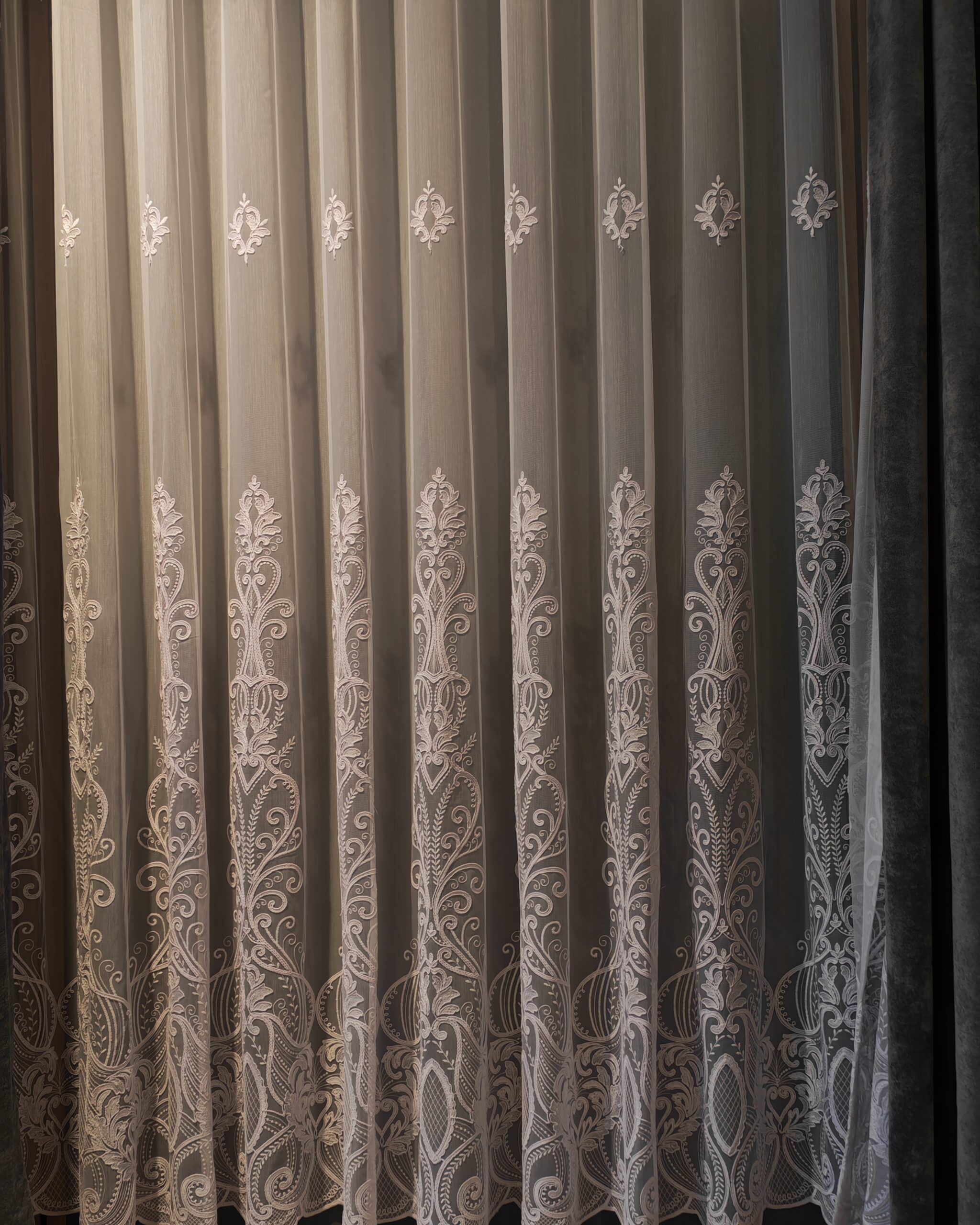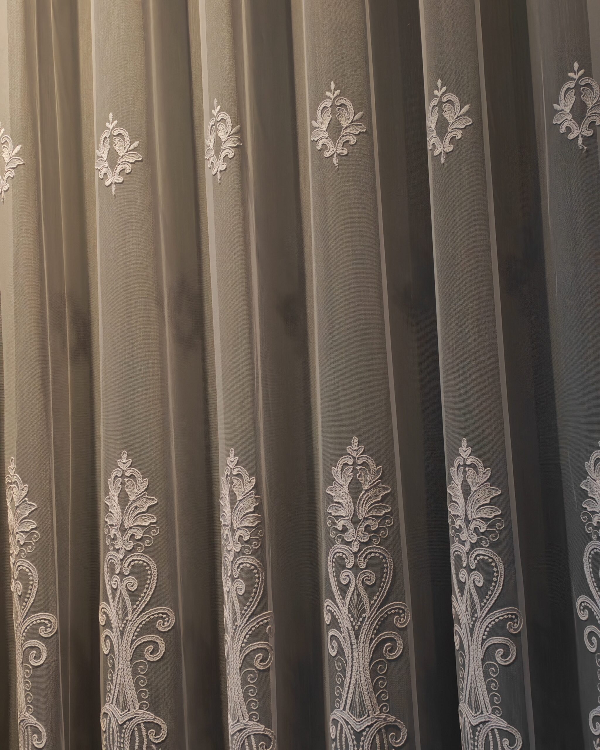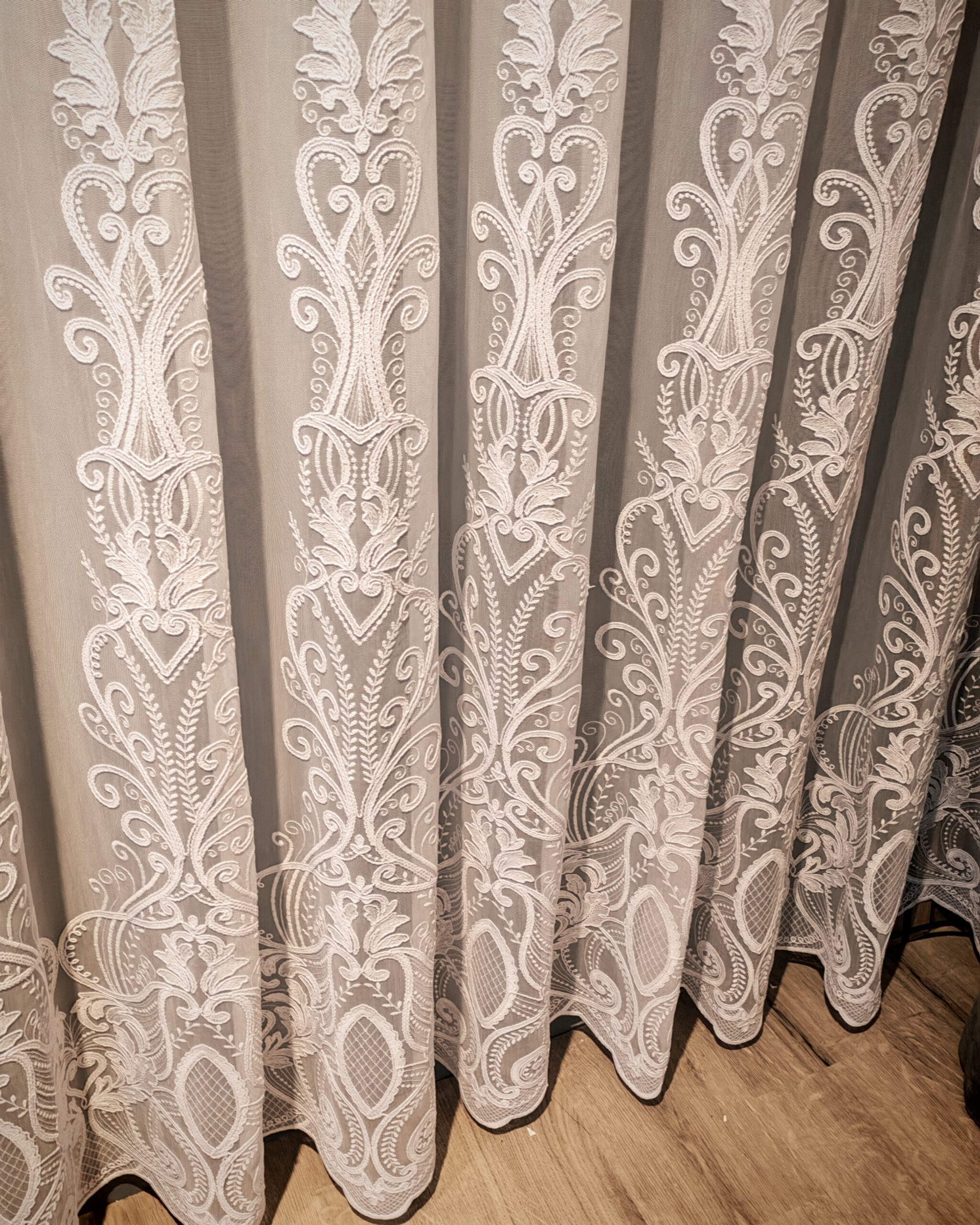 Perdea Aura din Bambus cu Broderie Albă 48109