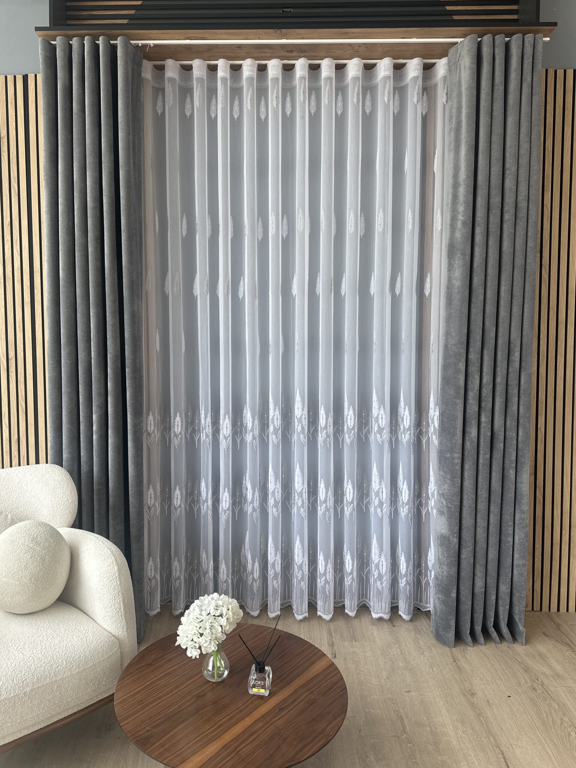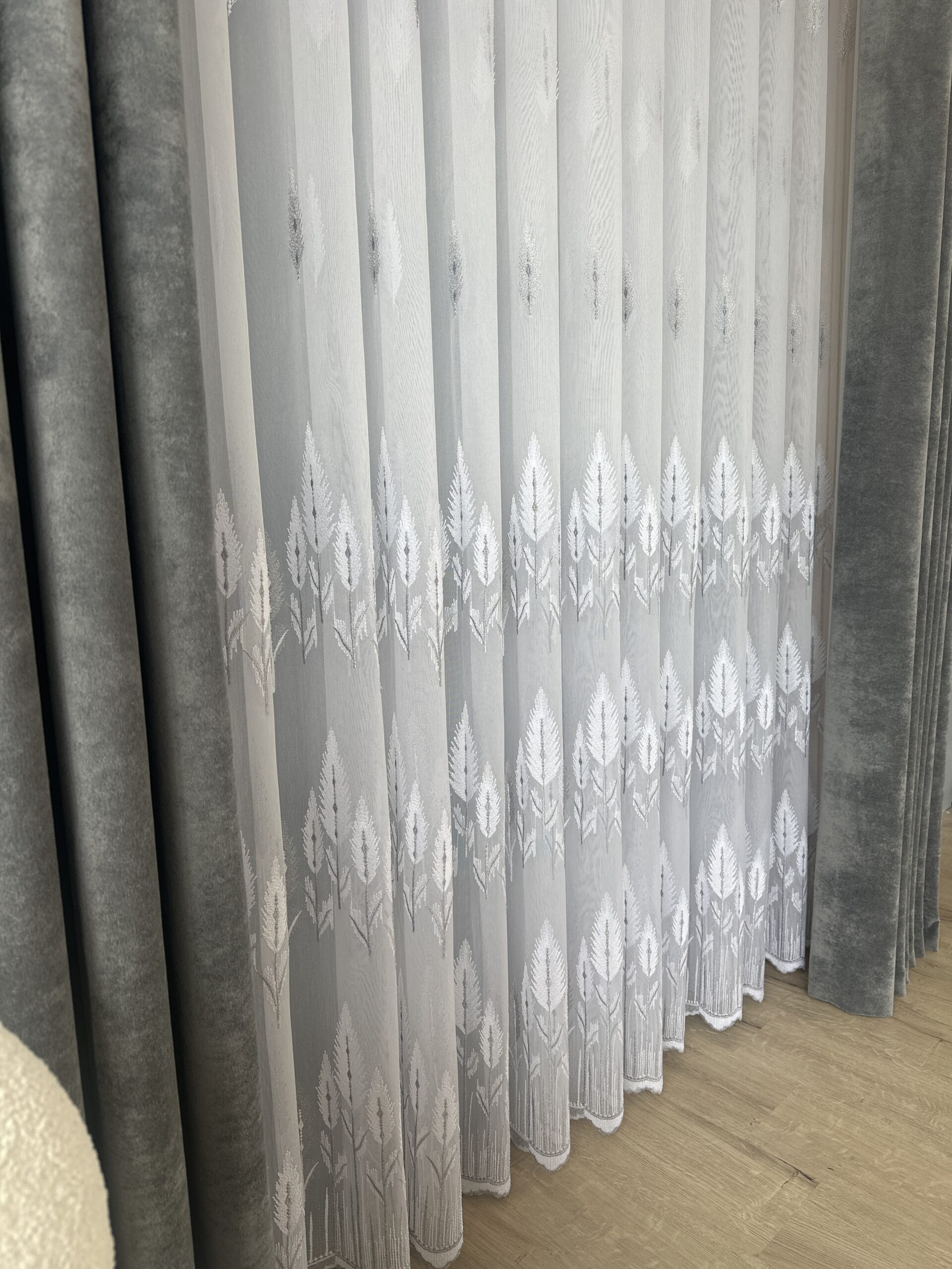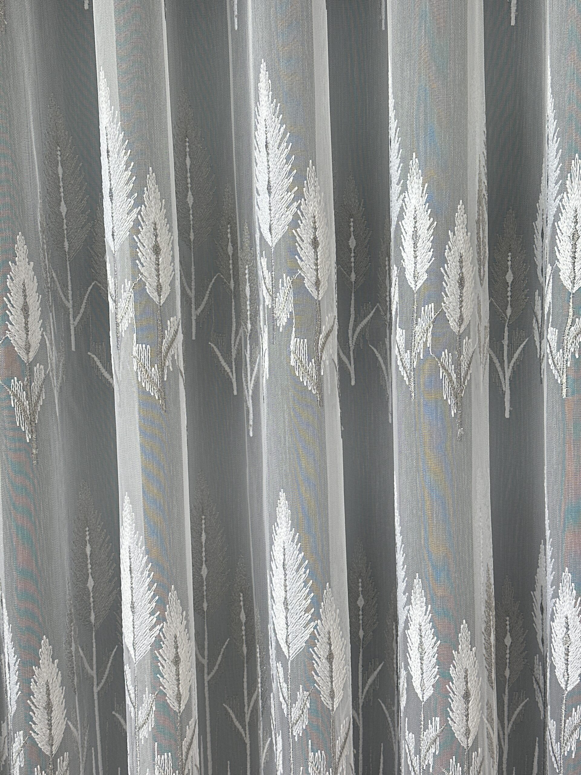 Perdea Bambus Brodat Model Copac Alb /Gri L5m/H2.60m cu Rejansa Wave