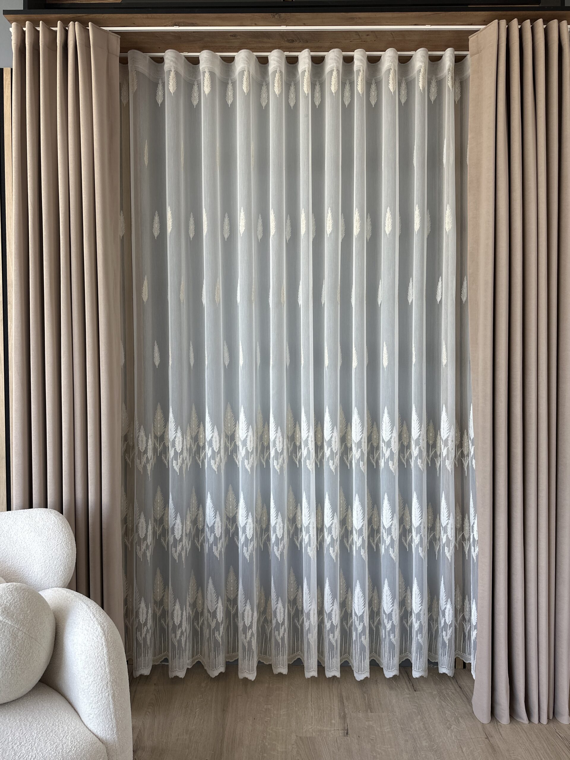 Perdea Bambus Brodat Model Copac Crem cu Auriu L5m/H2.60m cu Rejansa Wave
