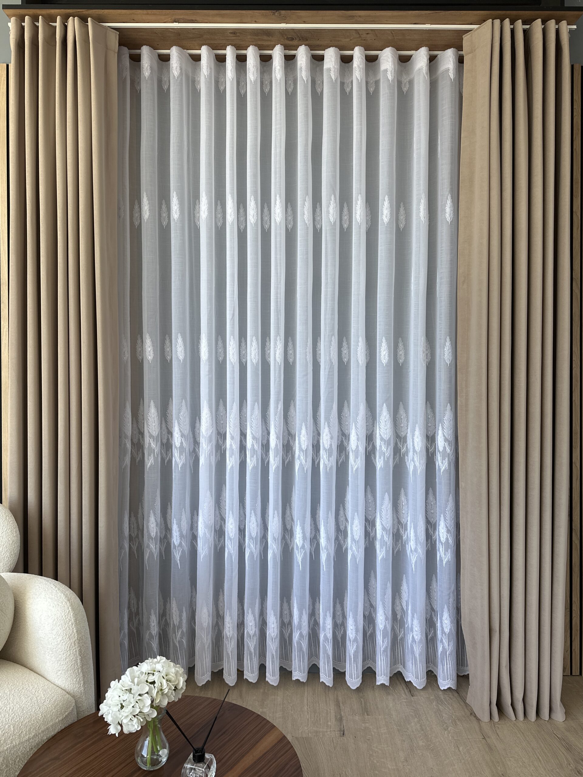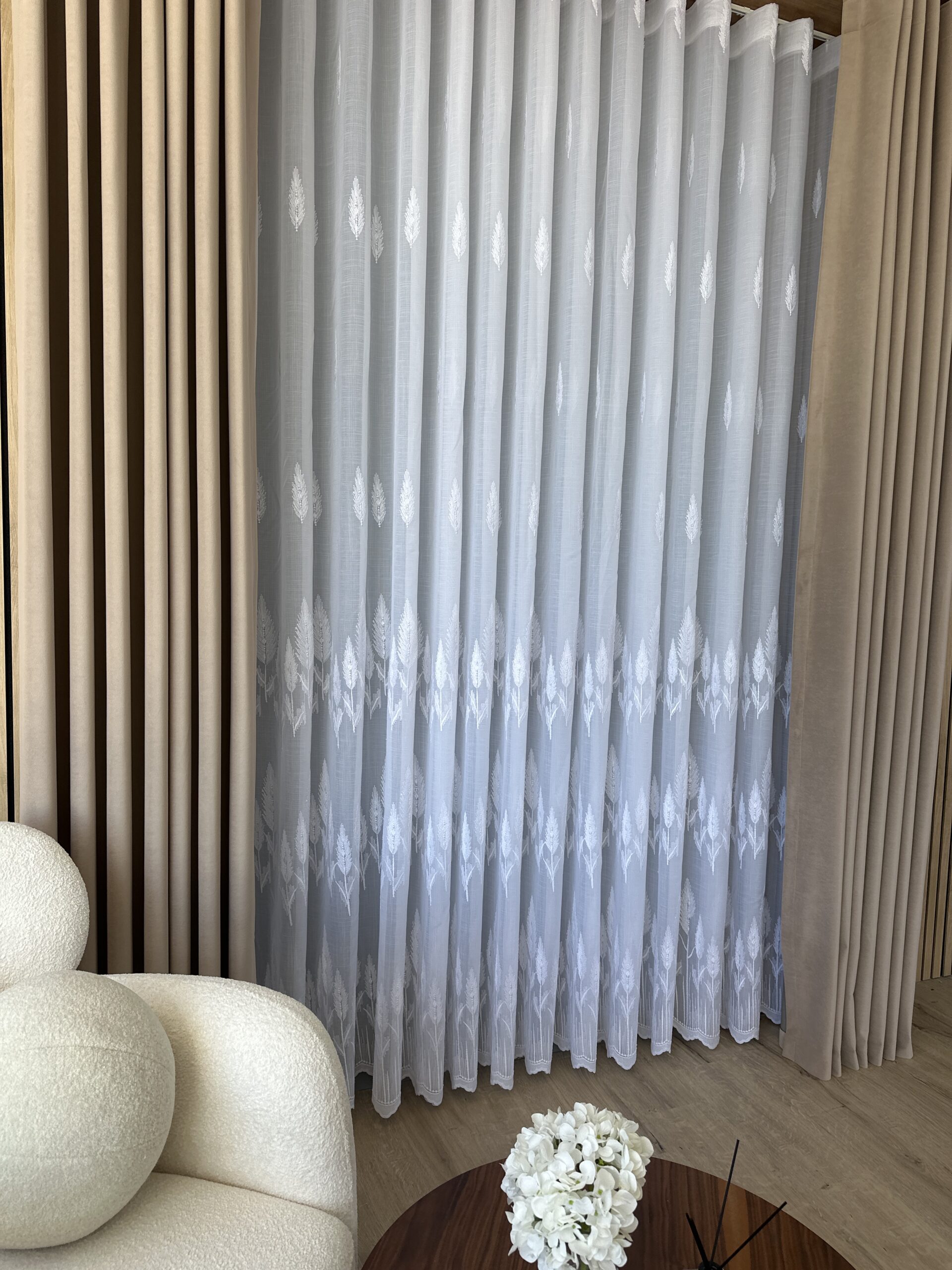 Perdea Brodat Model Copac – Alb 25PR194