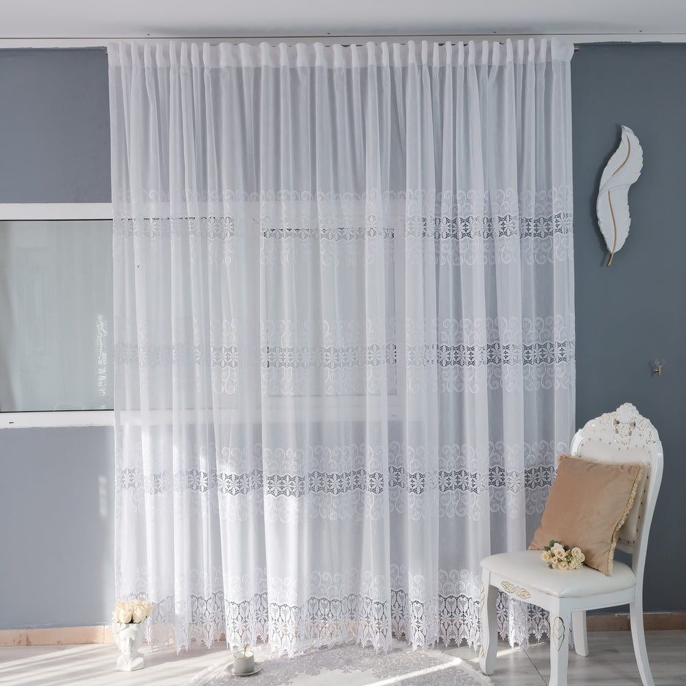 Perdea Brodata In cu Model Elegant CREM L5 m/H2.55m cu Rejansa de Bara