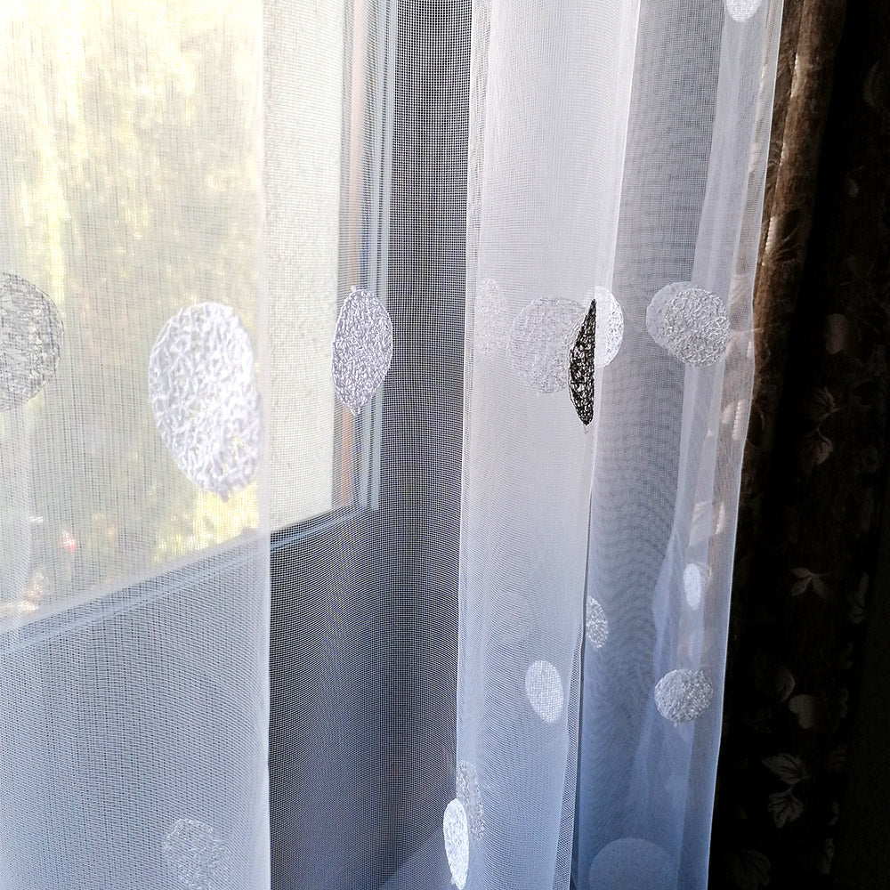 Perdea Brodata Tul Model Buline Alb Negru – L5m/H2.60m cu Rejansa de Bara -Sina