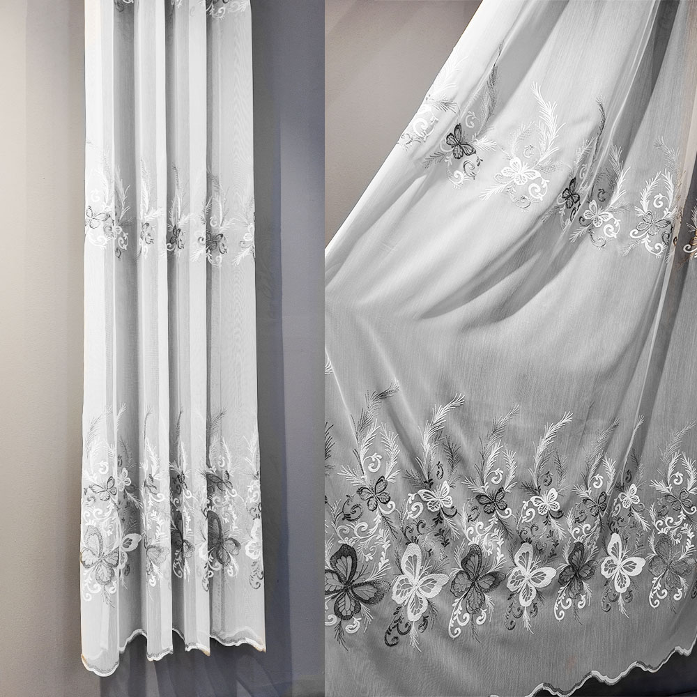 Perdea Casia cu Broderie Rafinata Alb/Gri
