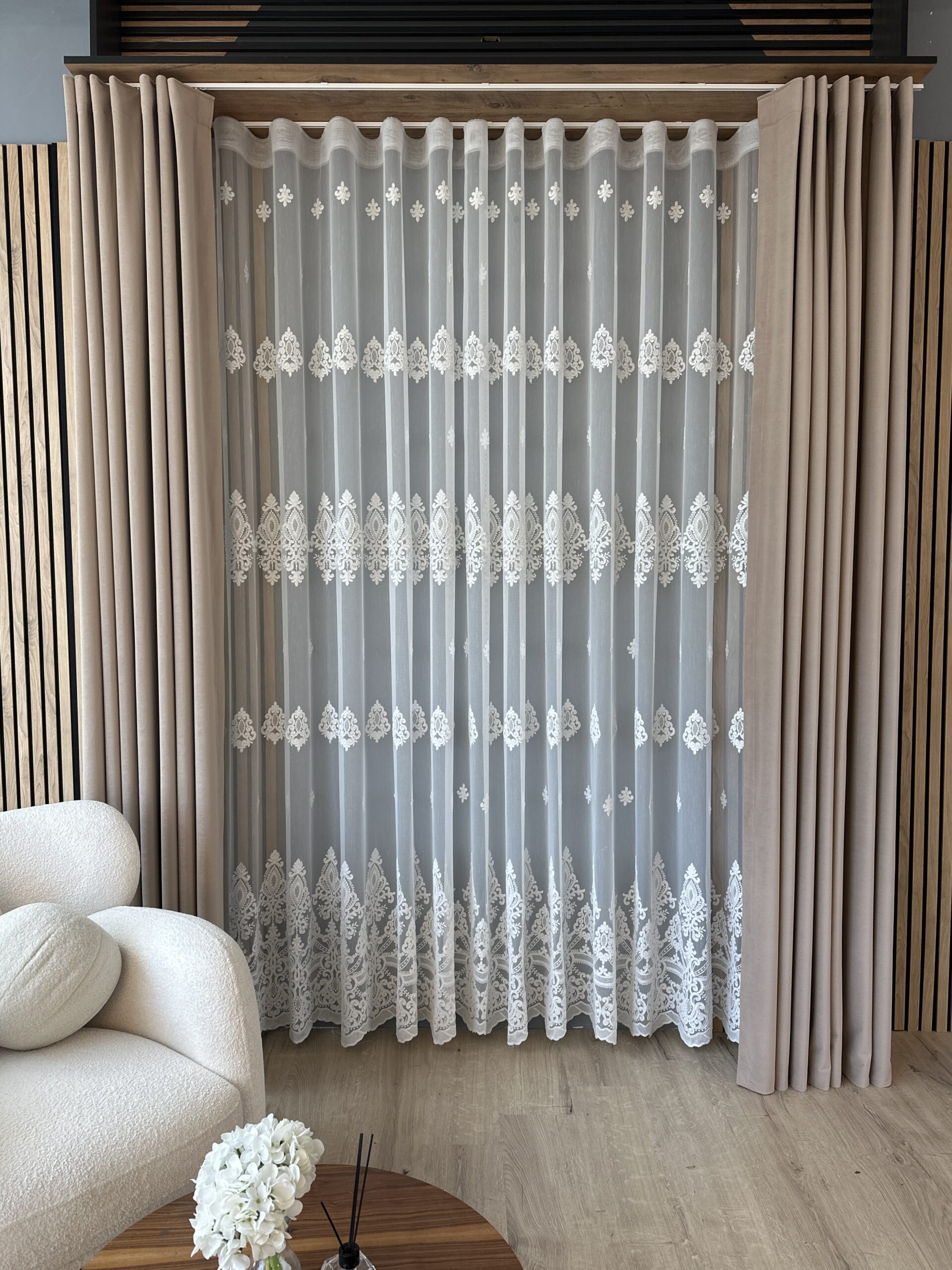 Perdea Daiana din Bambus cu Broderie Eleganta Crem 25PR083