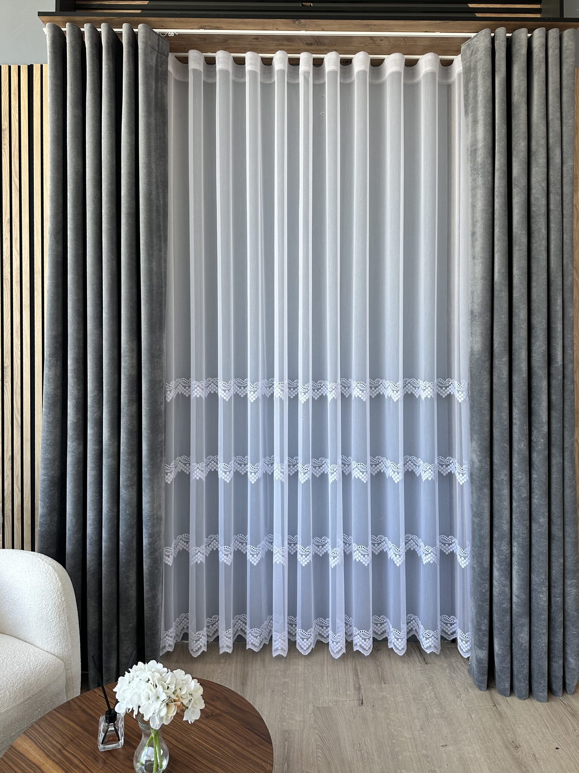 Perdea Dimaria cu Broderie Fina Alba 12793