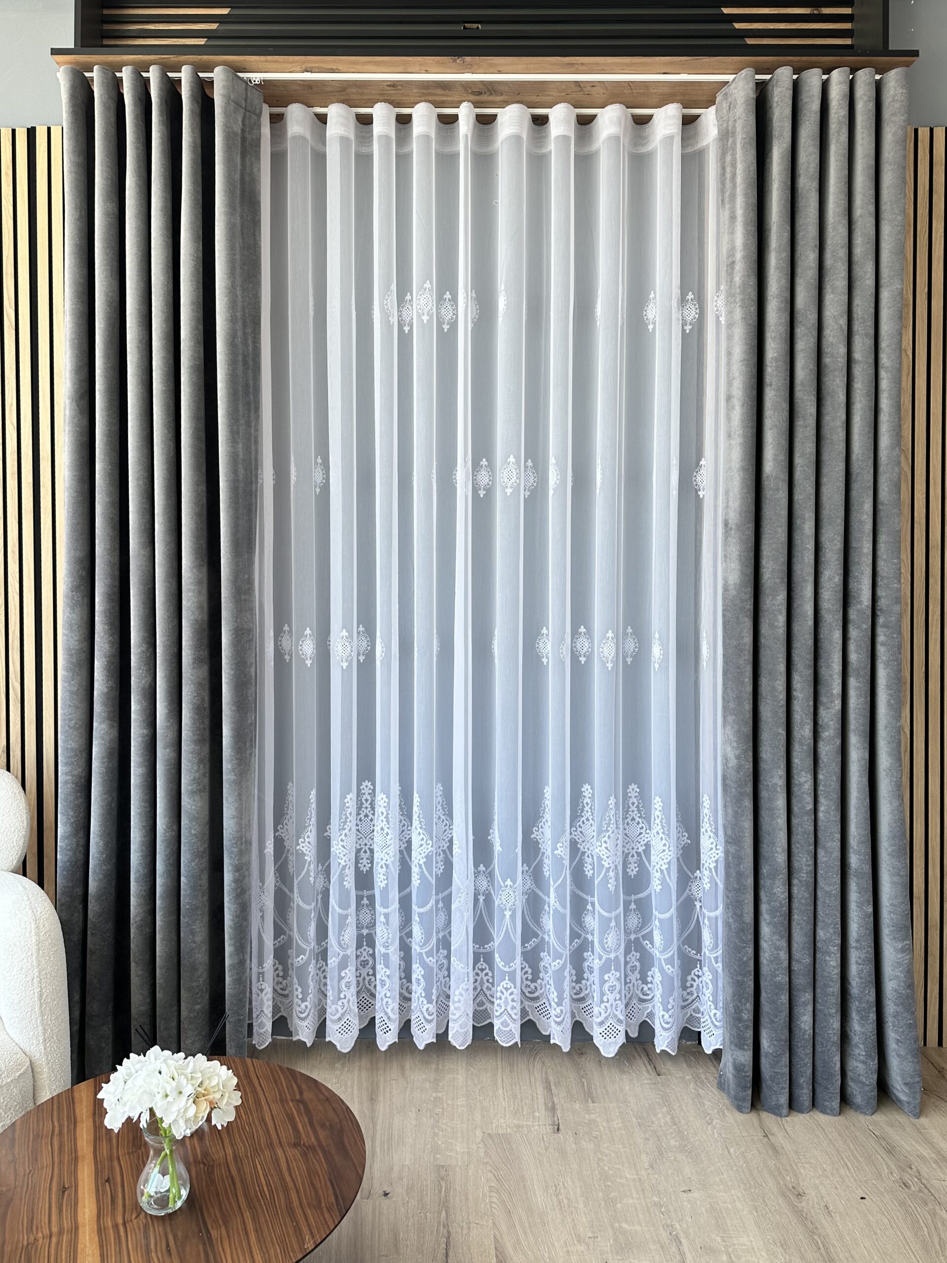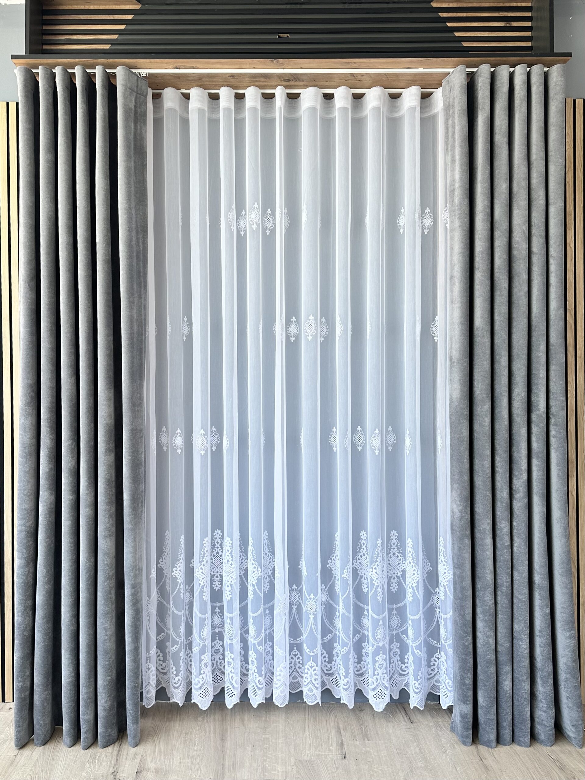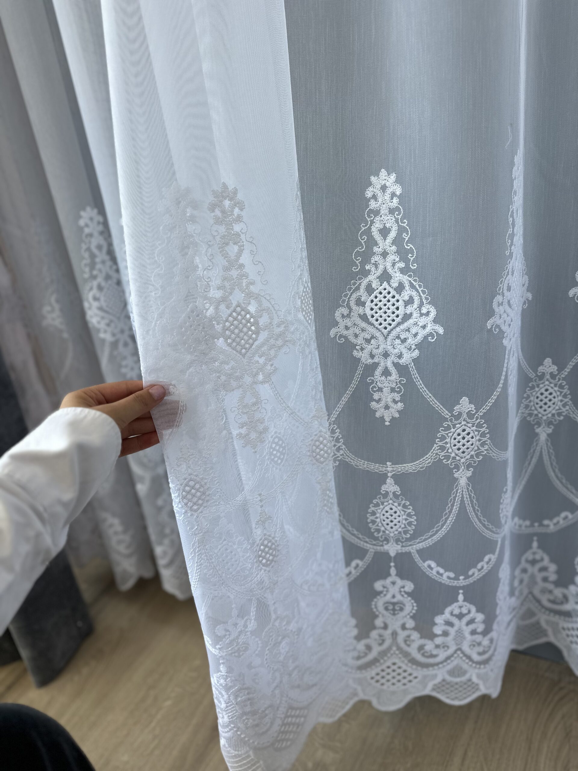 Perdea Dimaria cu Broderie Fina Alba CB24050Y L5m/H2.50m cu Rejansa Wave