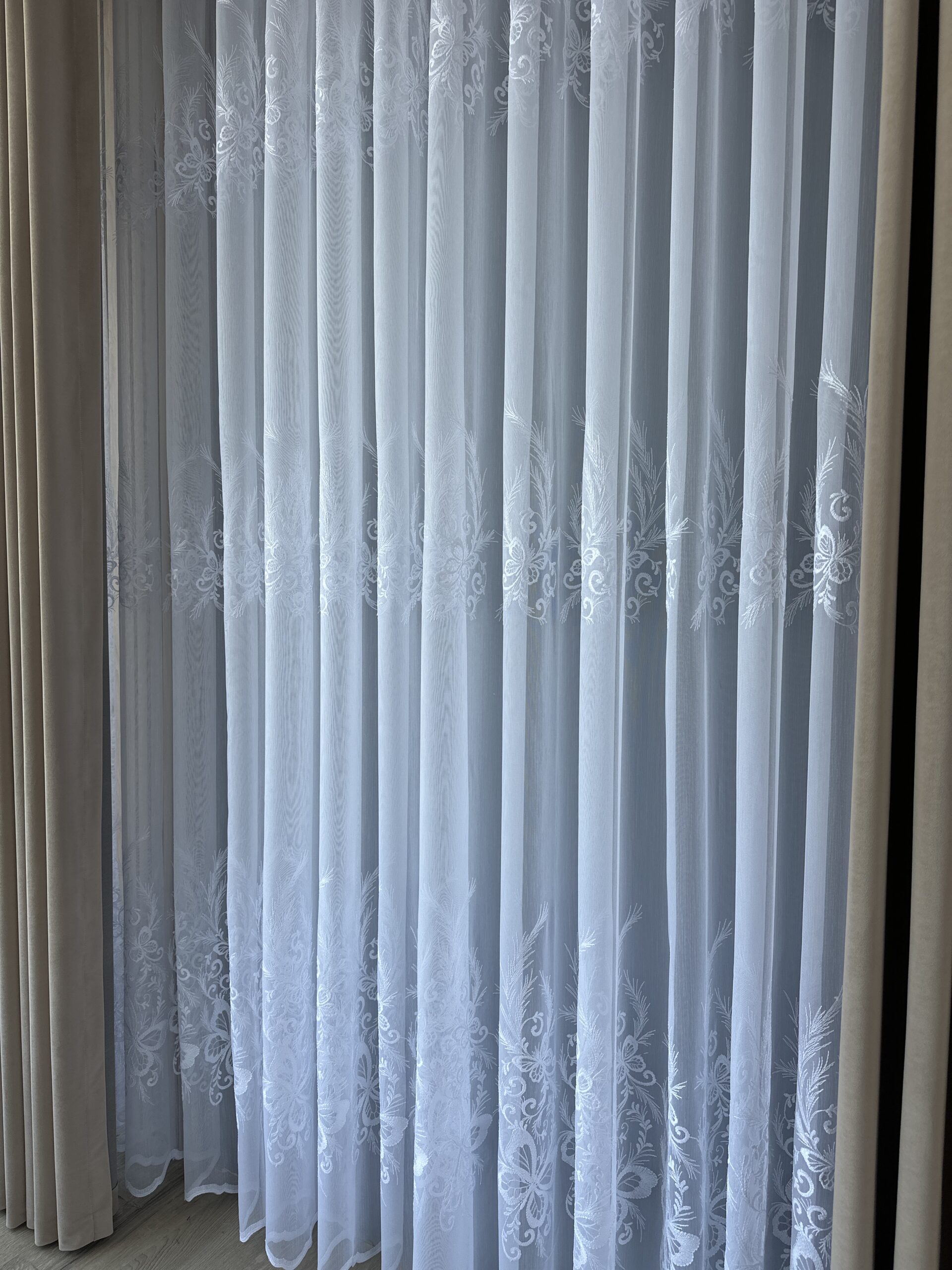 Perdea din Bambus Albă cu Broderie Luxury Butterfly 24784