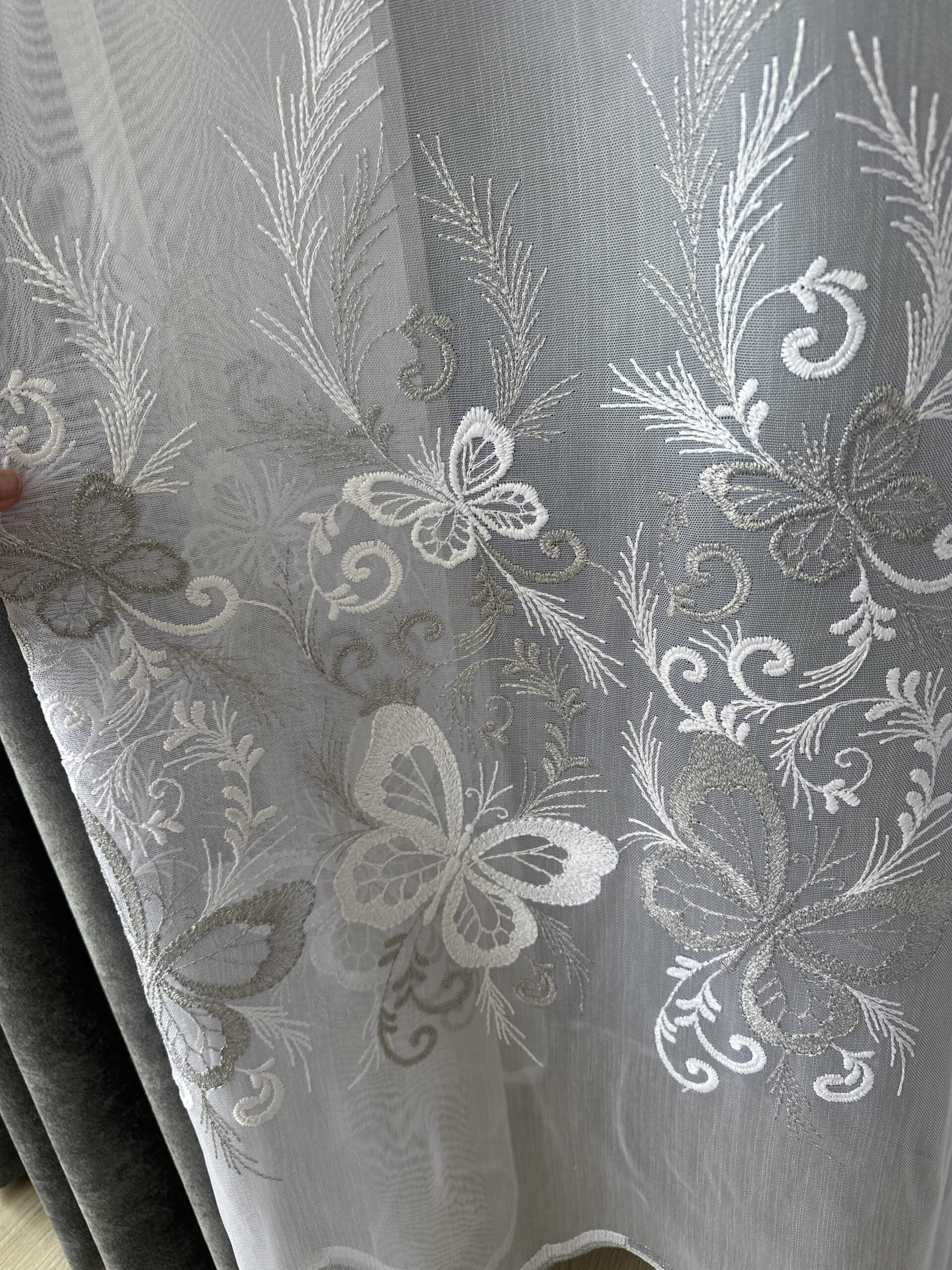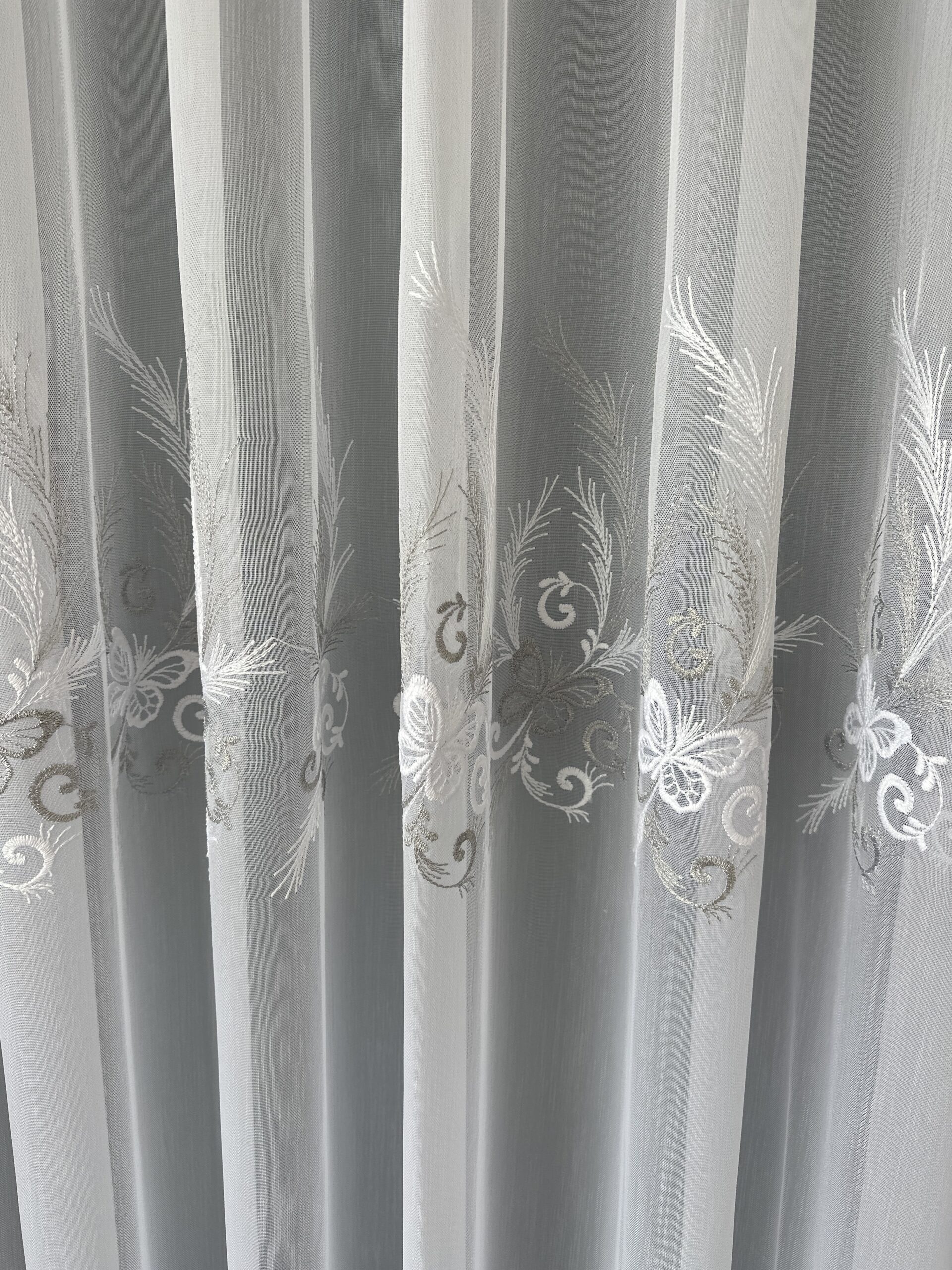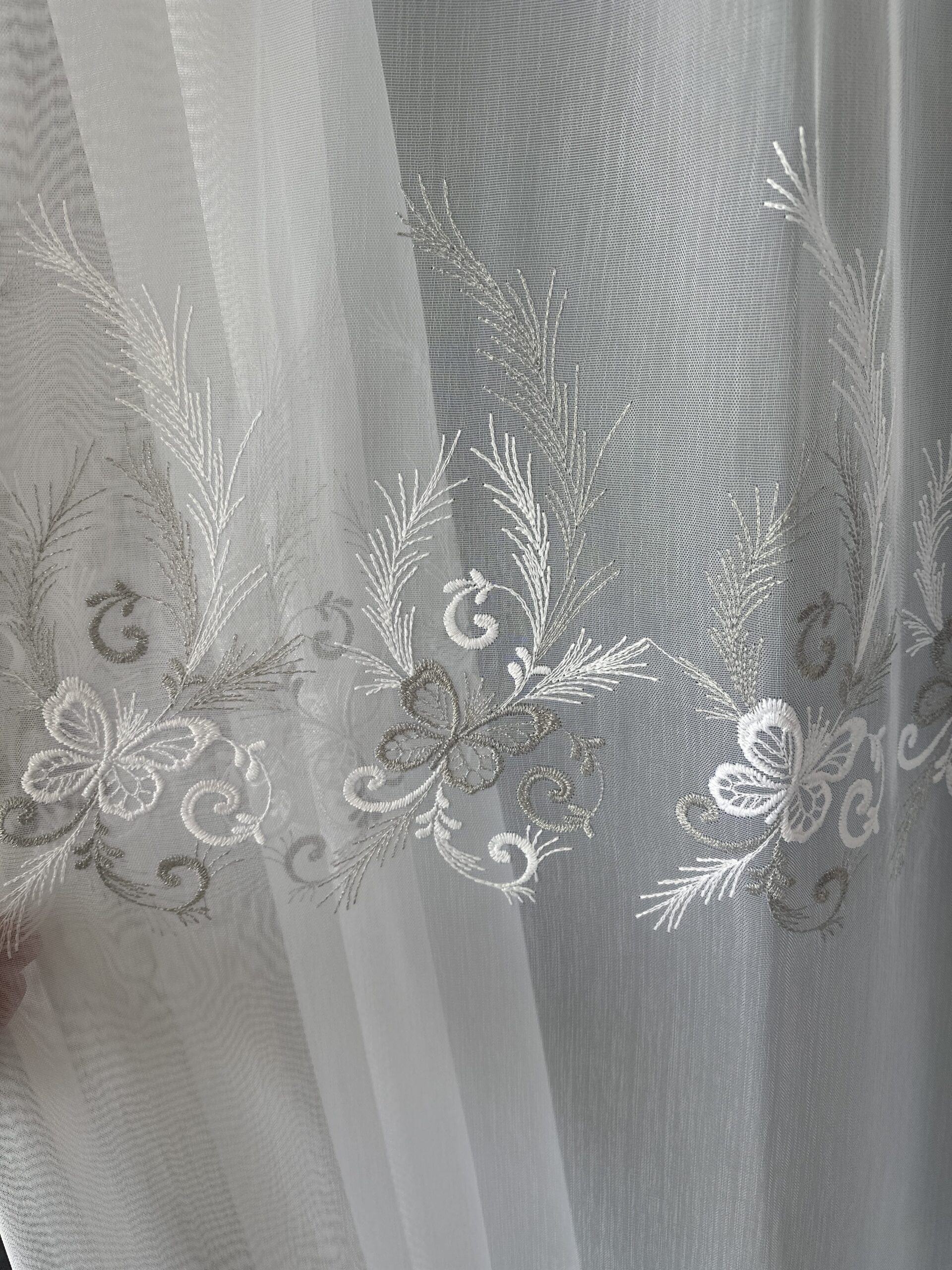 Perdea din Bambus Albă cu Gri cu Broderie Luxury Butterfly 24784