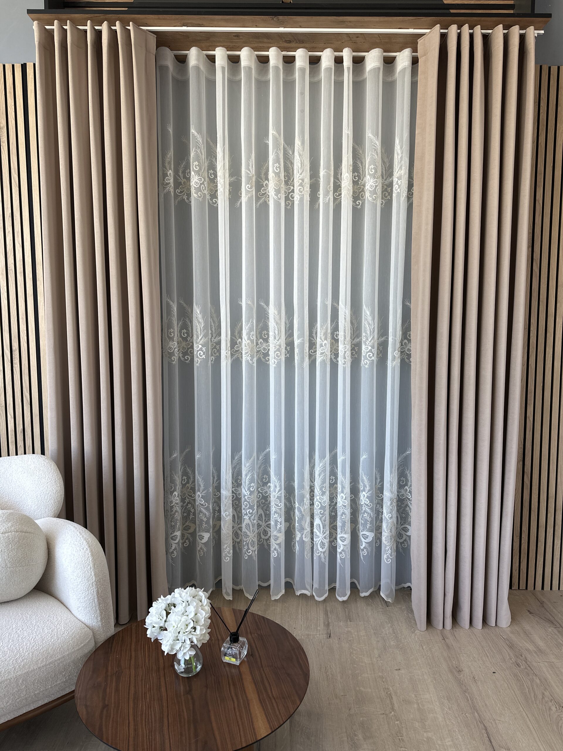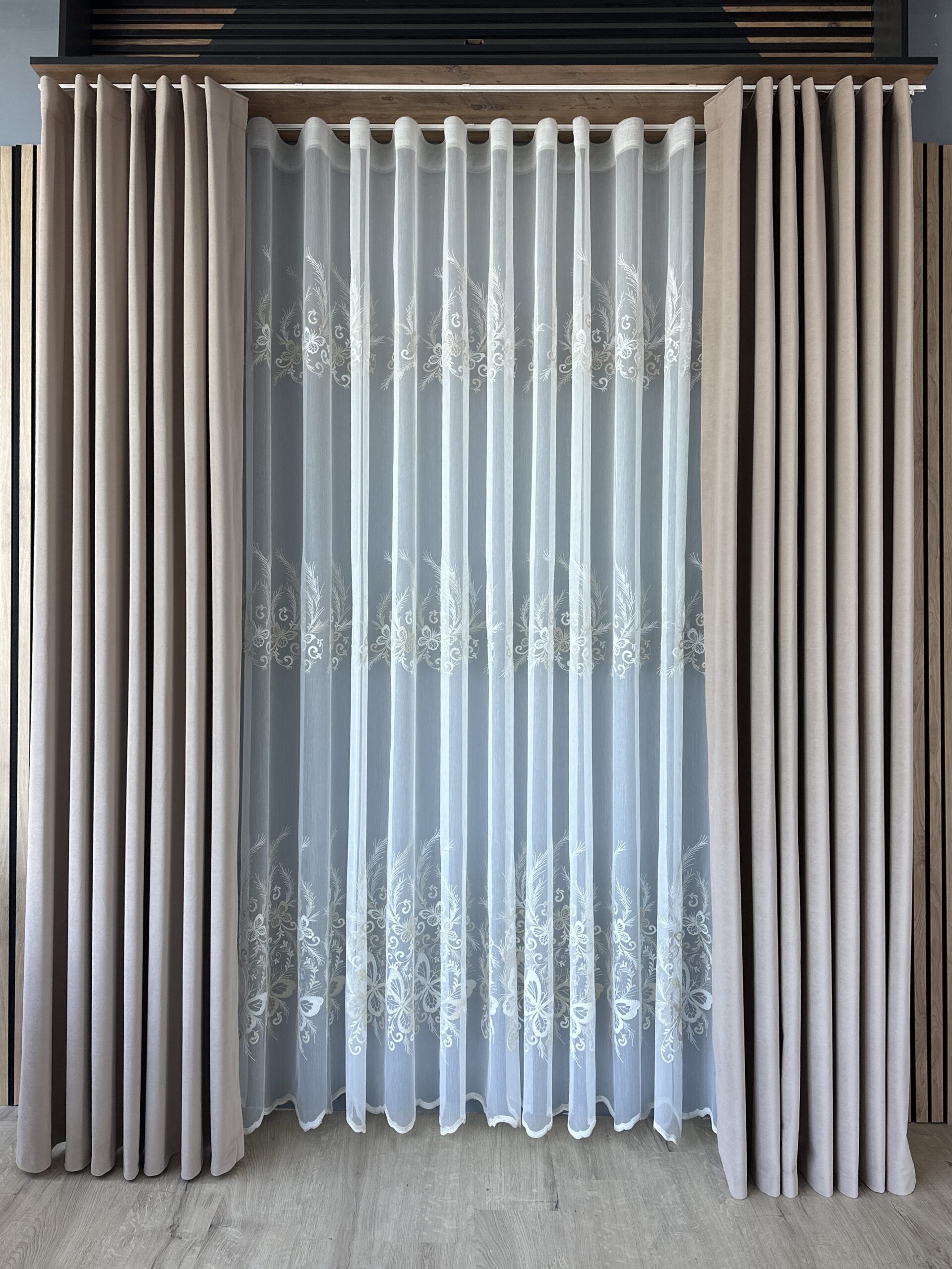 Perdea din Bambus Crem-Auriu cu Broderie Luxury Butterfly 24784