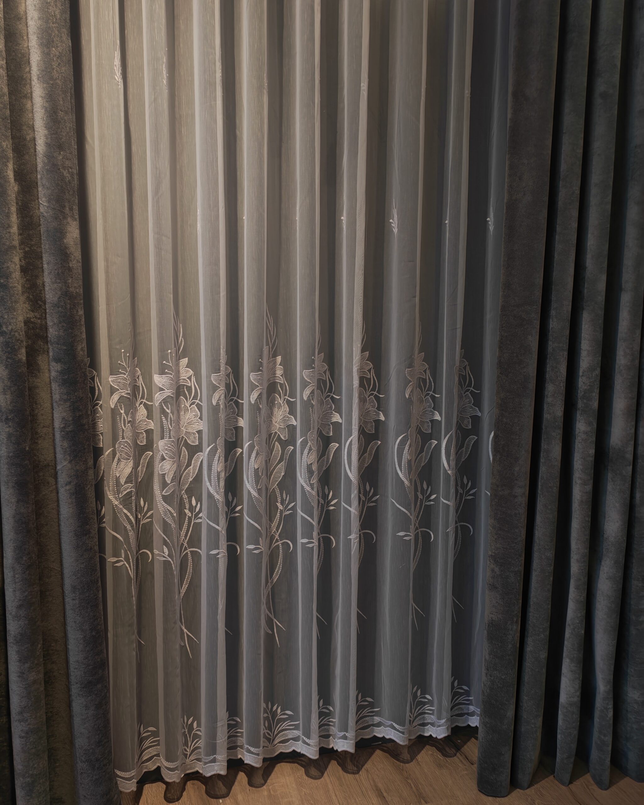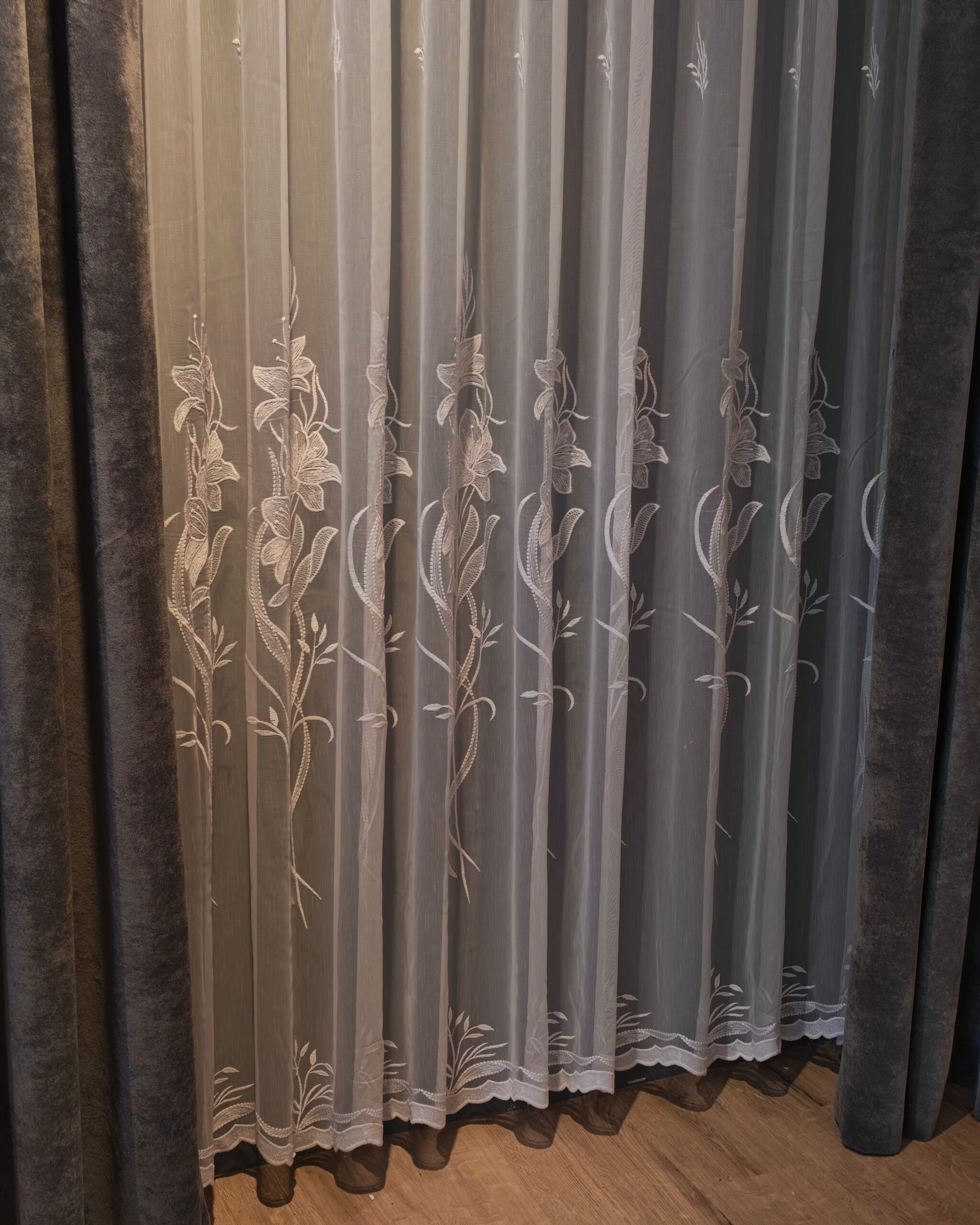 Perdea din Bambus cu Broderie Fină Albă 48085 L4.50m/H2.55m cu Rejansa Wave