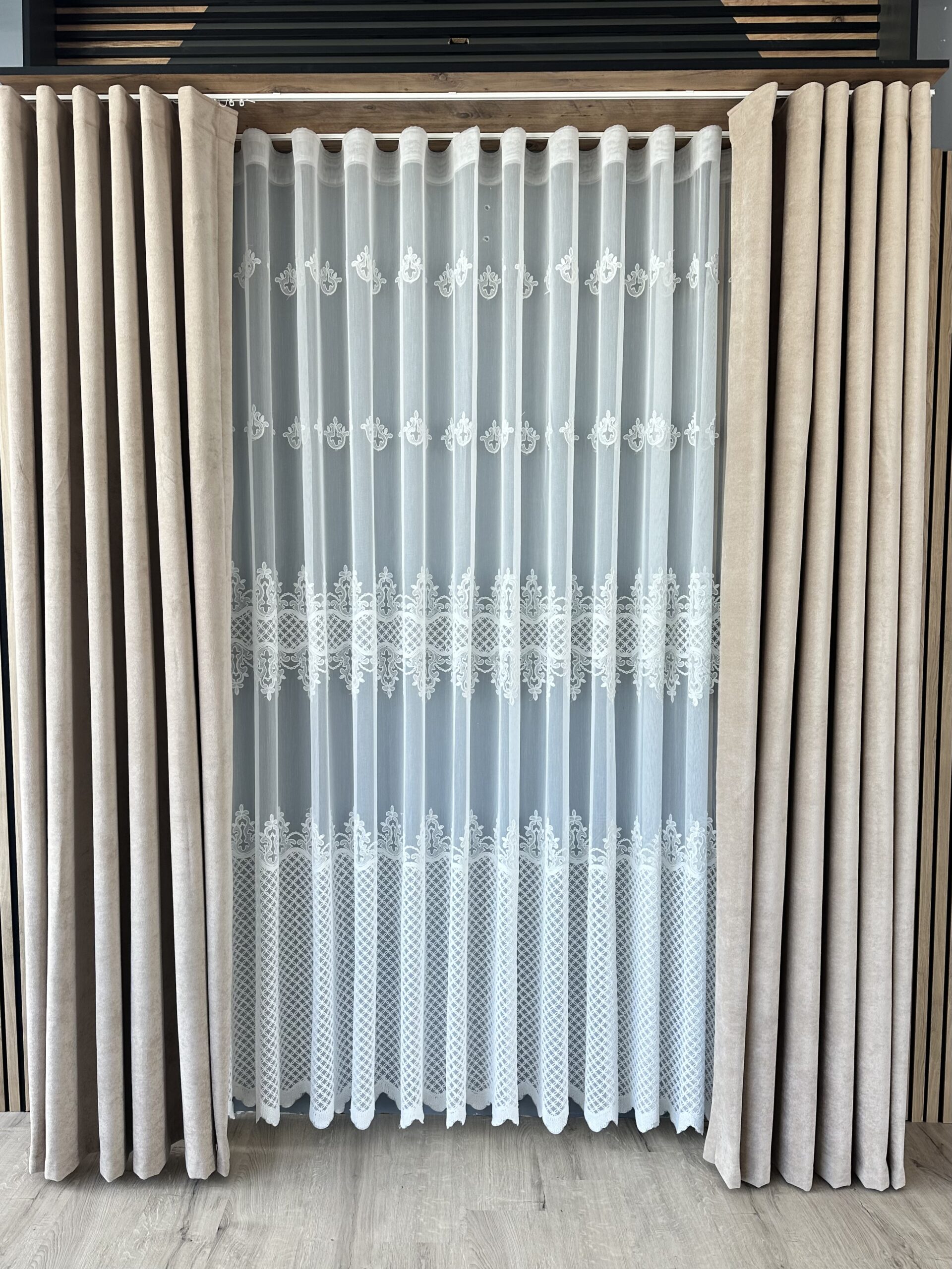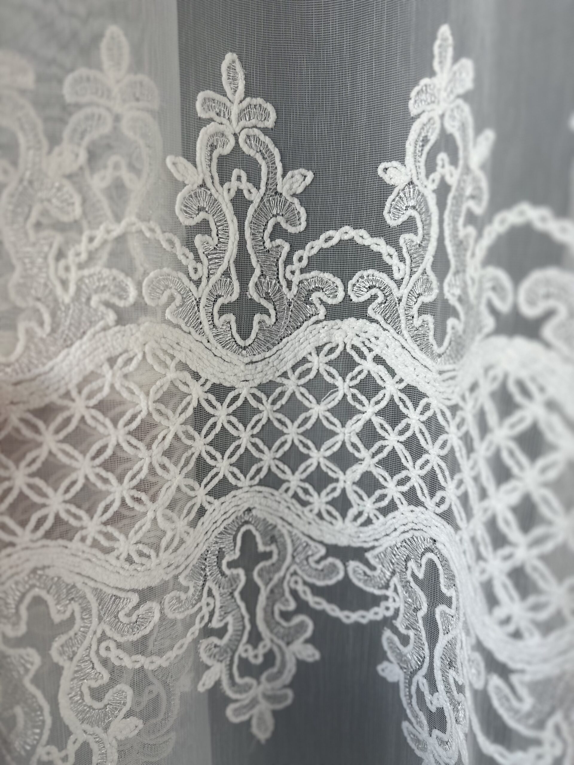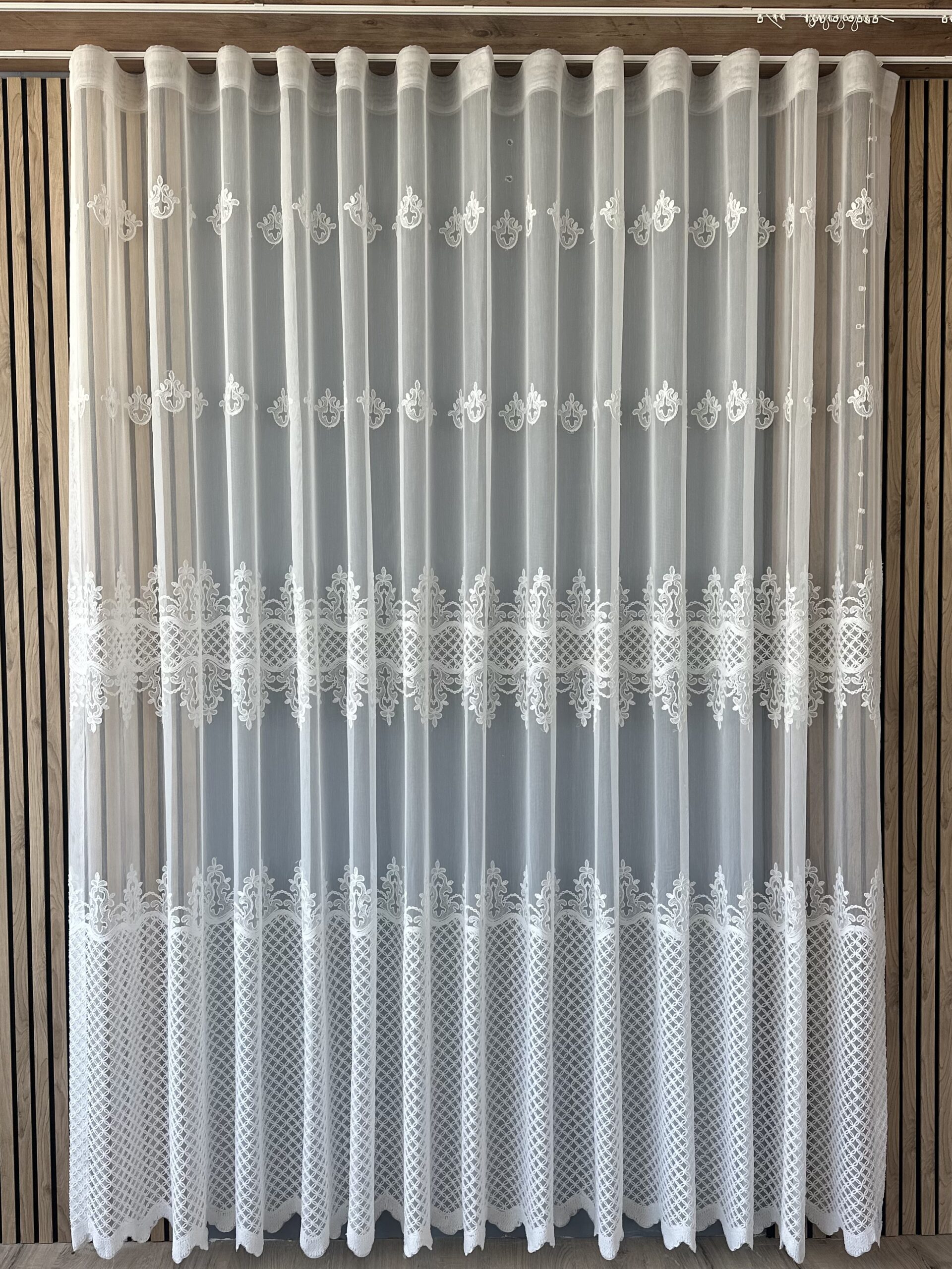 Perdea din Bambus cu Broderie Fină Albă L4.90m/H2.55m cu Rejansa Wave