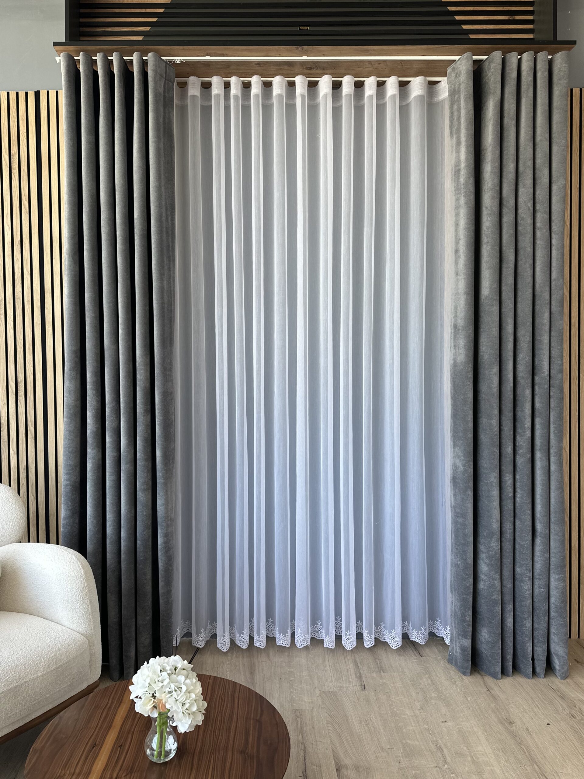 Perdea din Bambus cu Broderie Fina Alba L5m/H2.60m cu Rejansa de 10 cm