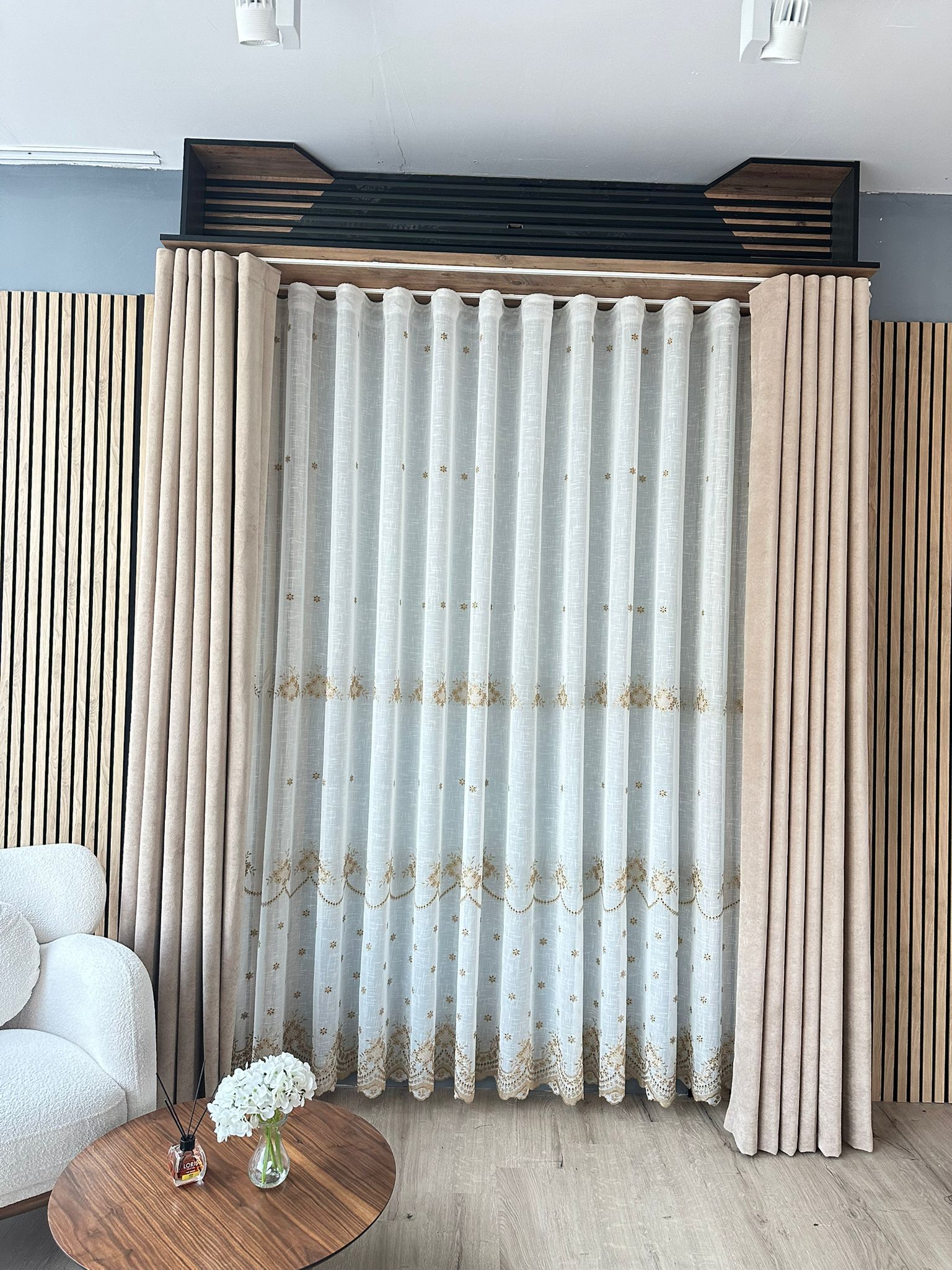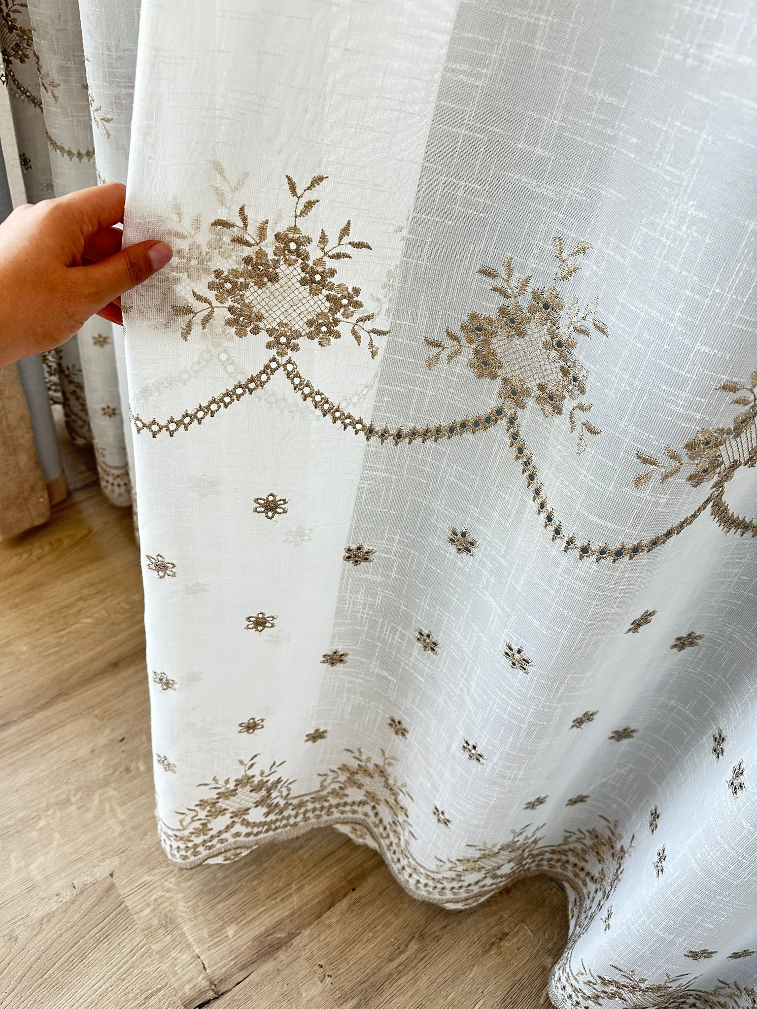 Perdea Din In cu Broderie Alb/Auriu L4.90m/H2.55m cu Rejansa de Wave