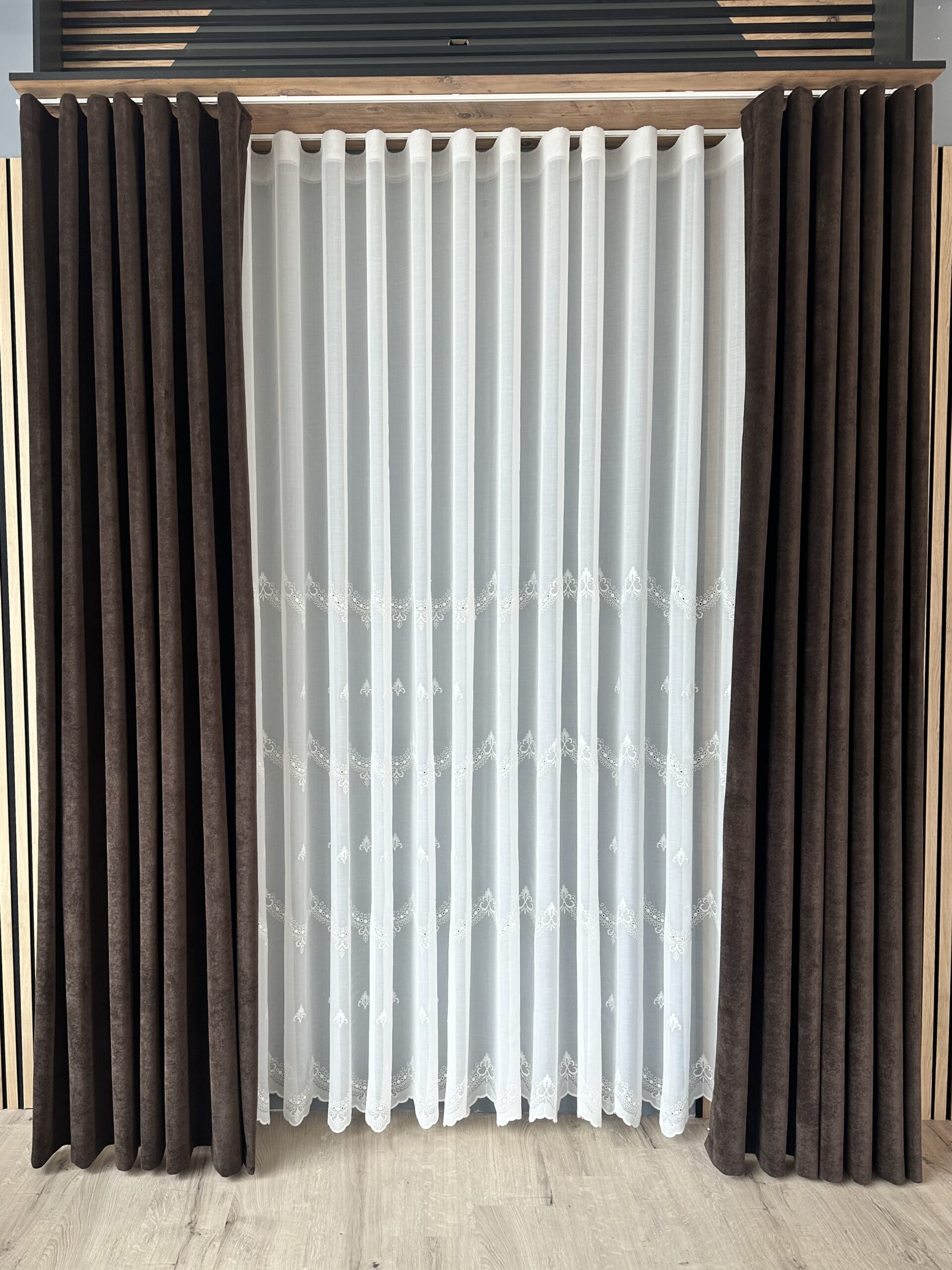 Perdea din In cu Broderie Eleganta Maria Crem L5m/H2.60m cu Rejansa Wave