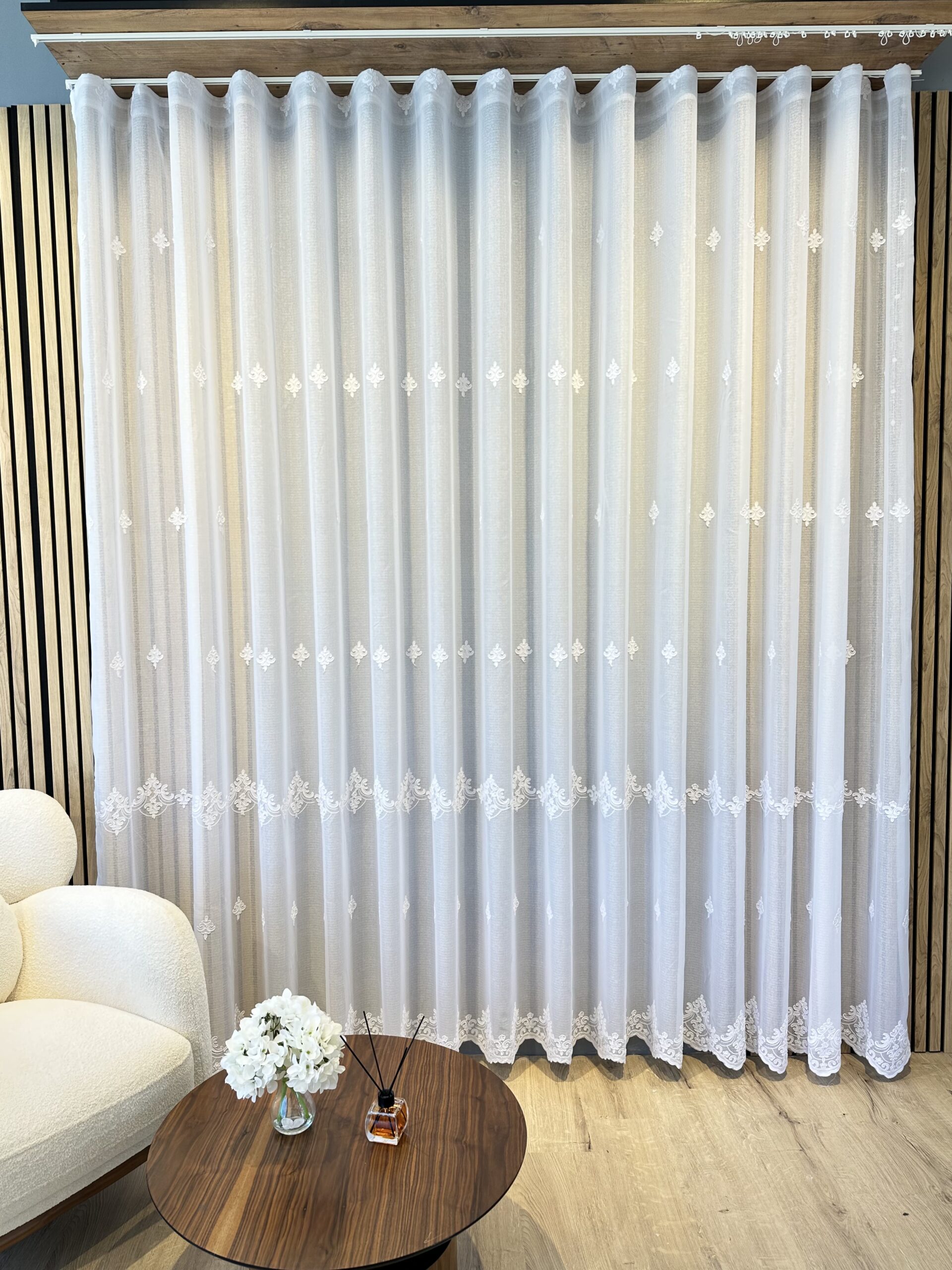 Perdea din In cu Broderie Fina Alba 25PRO41