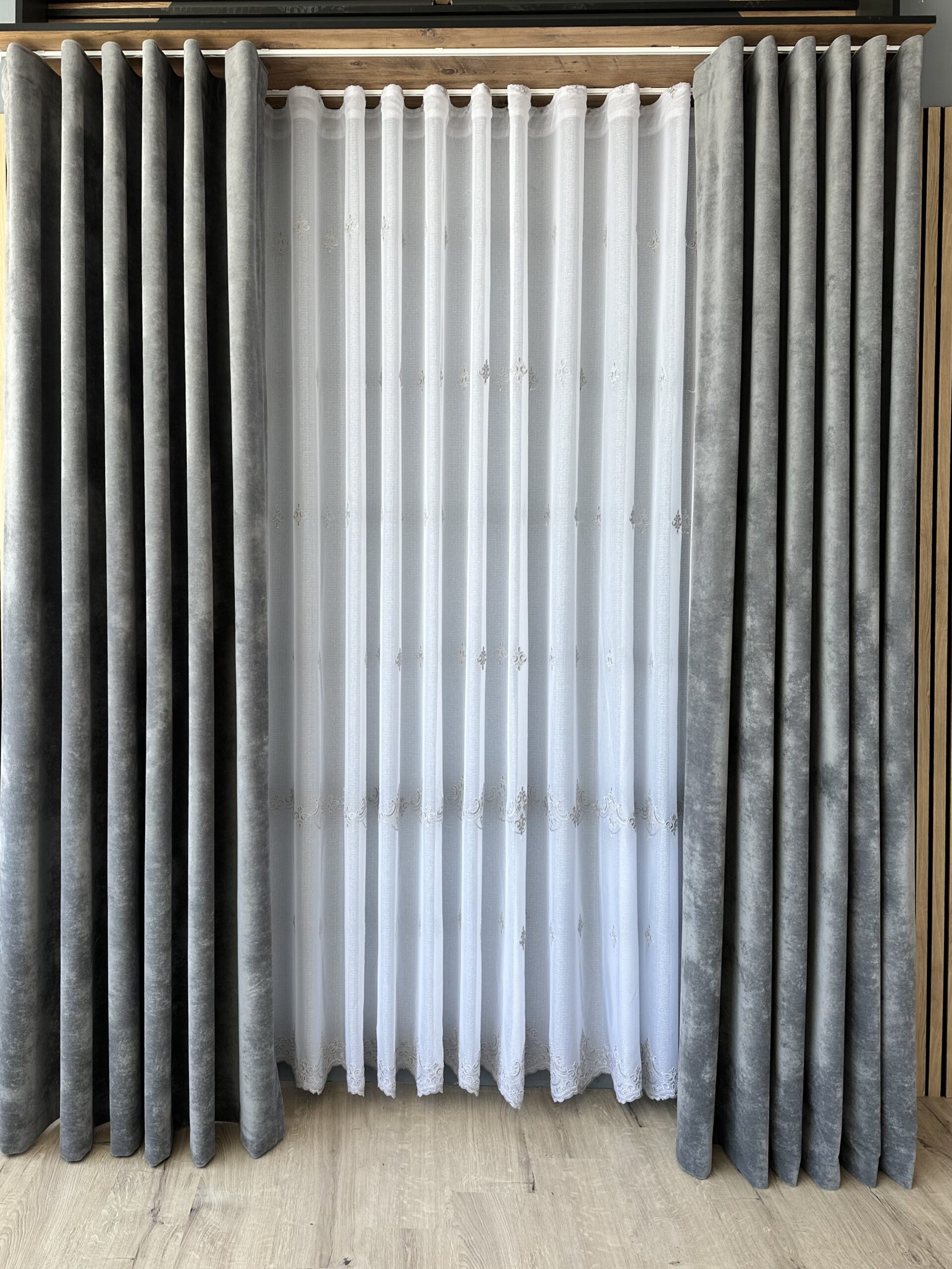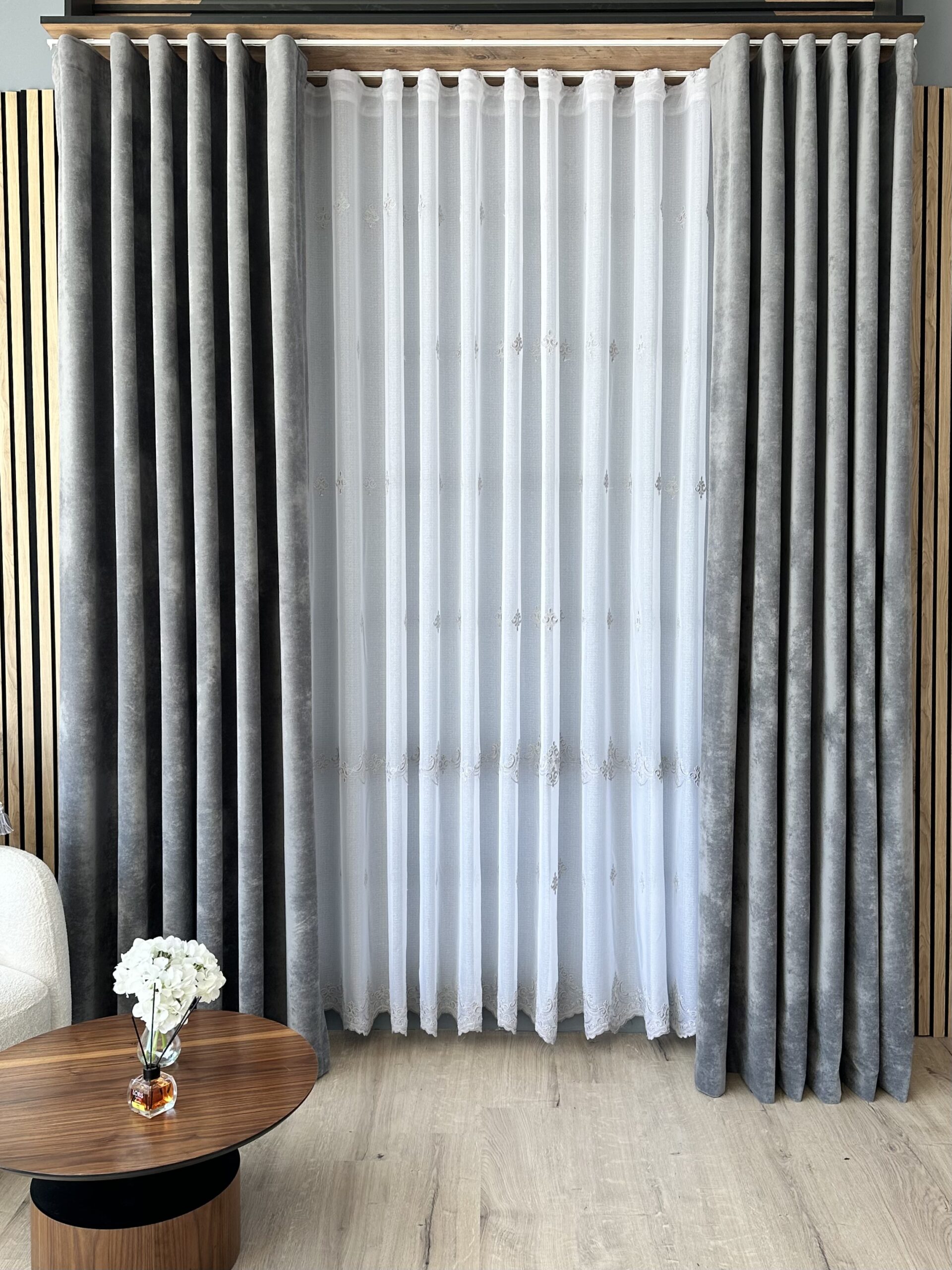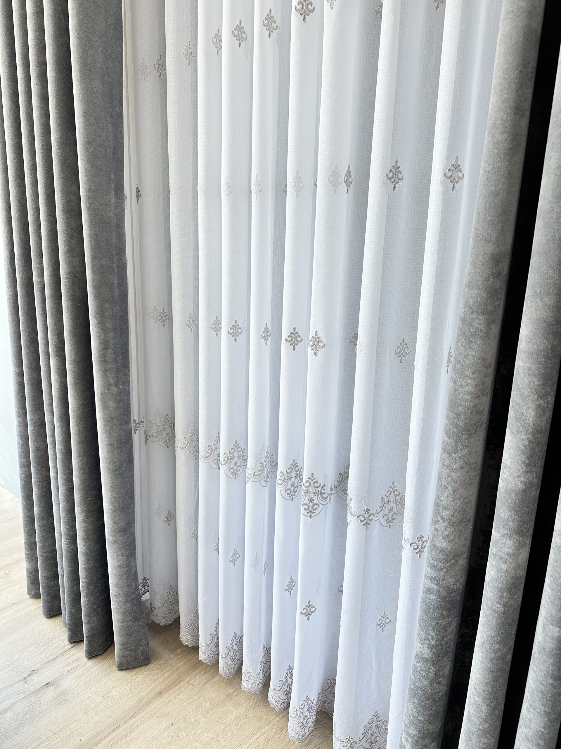 Perdea din In cu Broderie Fina Gri Florense 25PR041