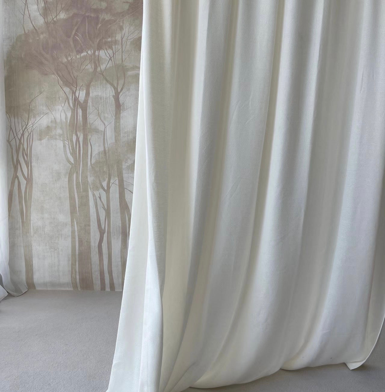 Perdea din Matase 100% Opaca și Lucioasa Alb L4m/H2.48m cu Rejansa de 6cm