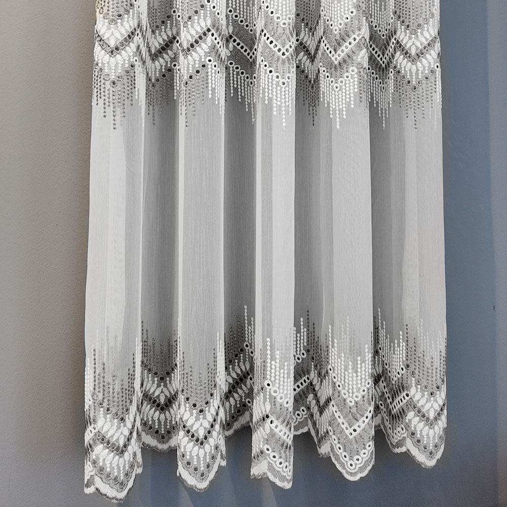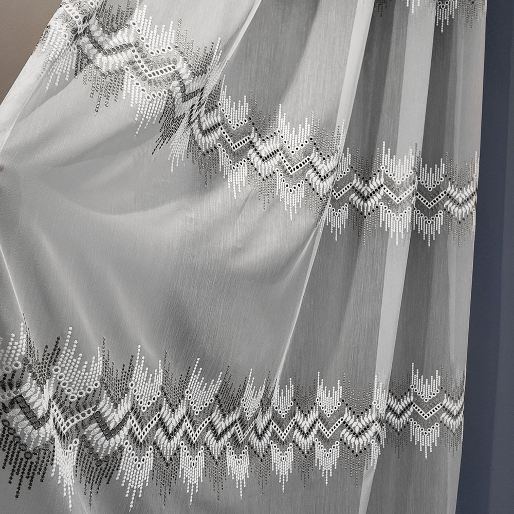 Perdea Elisa cu Broderie Fina Alb/Gri L5m/H2.55m cu Rejansa Wave