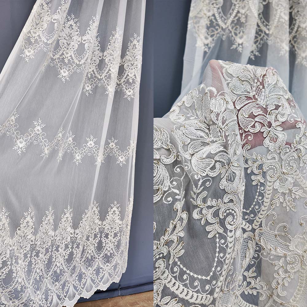 Perdea Evelina cu Broderie Tesuta Crem/Auriu L5m/H2.55m cu Rejansa Wave