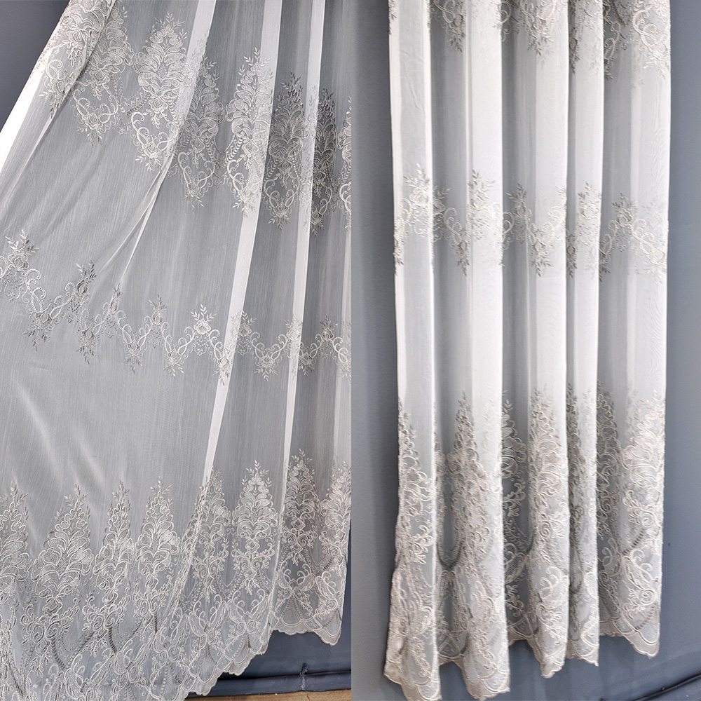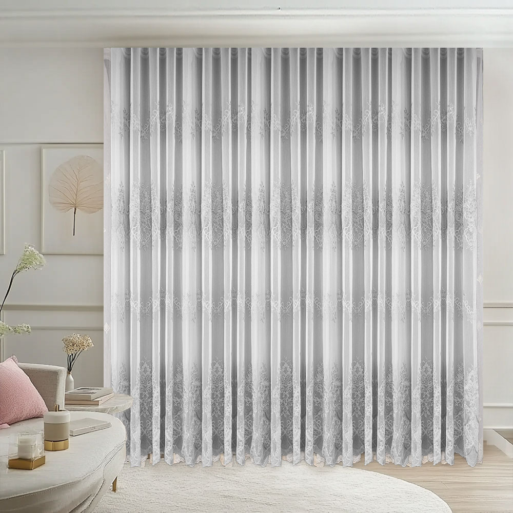 Perdea Evelina cu Broderie Tesuta Gri L5m/H2.55m cu Rejansa Wave