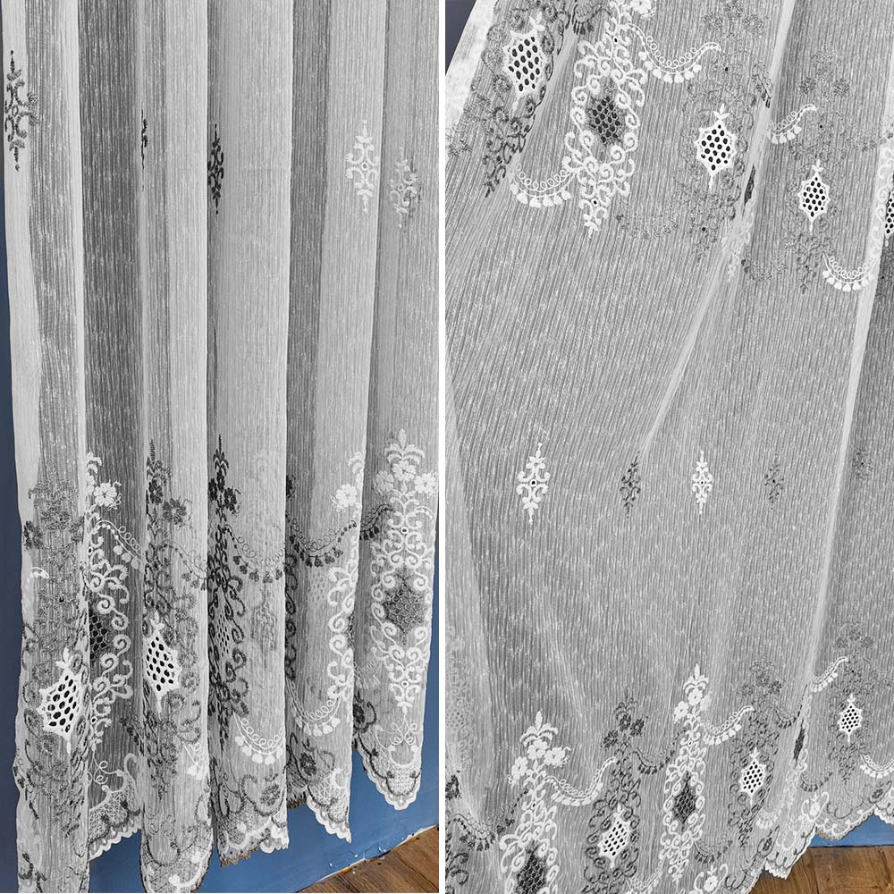 Perdea Fina Luisa cu Broderie Alb/Gri 12693 L4.7m/H2.60m cu Rejansa de Bara